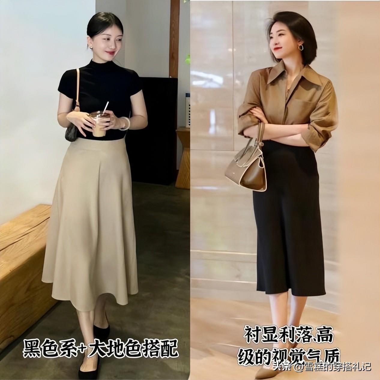 那如果大地色是與黑色或者是灰色這兩款顏色組合起來的話,那麼相比較於白色,整體的視覺利落感和高級感會更加的明顯一些。當然在選擇單品的時候還是要將簡約大氣利落類型的設計優選,就很適合在職場通勤的時候進行搭配,而且這兩款顏色的組合都非常的顯白穩定。