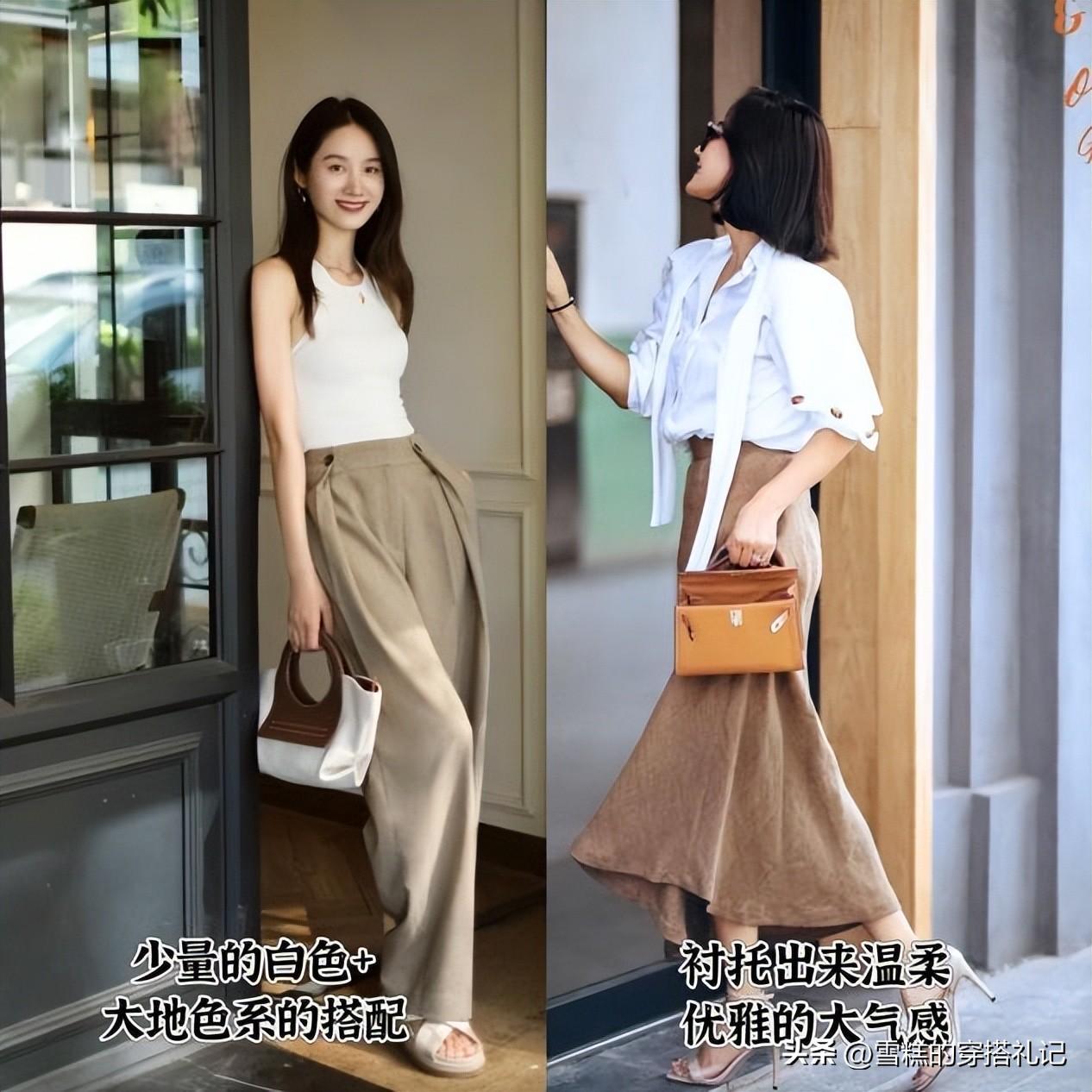 不管選擇任何一款大地色系列當中的顏色進行搭配,與基礎經典的白色系列的單品在組合起來的時候,不僅非常富有視覺層次感,而且會在夏季當中彰顯的更加具有溫柔和優雅感。對於中年階段的女性而言,這樣的配色系列也是非常的適宜進行優選的呢。