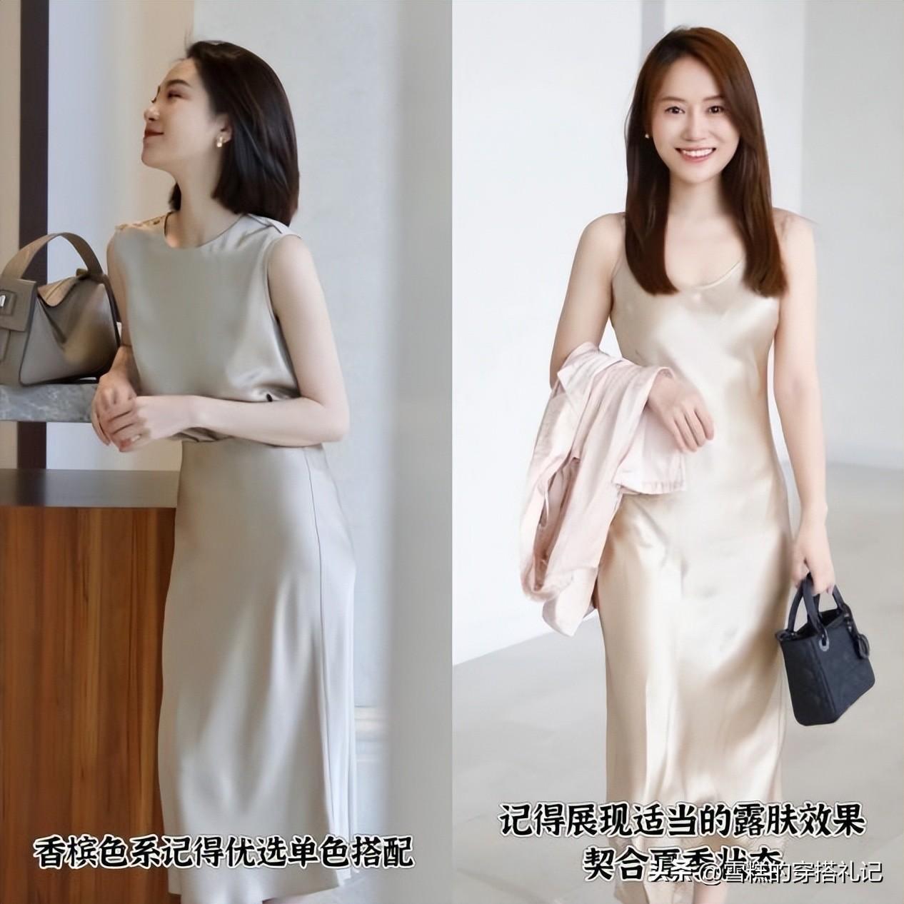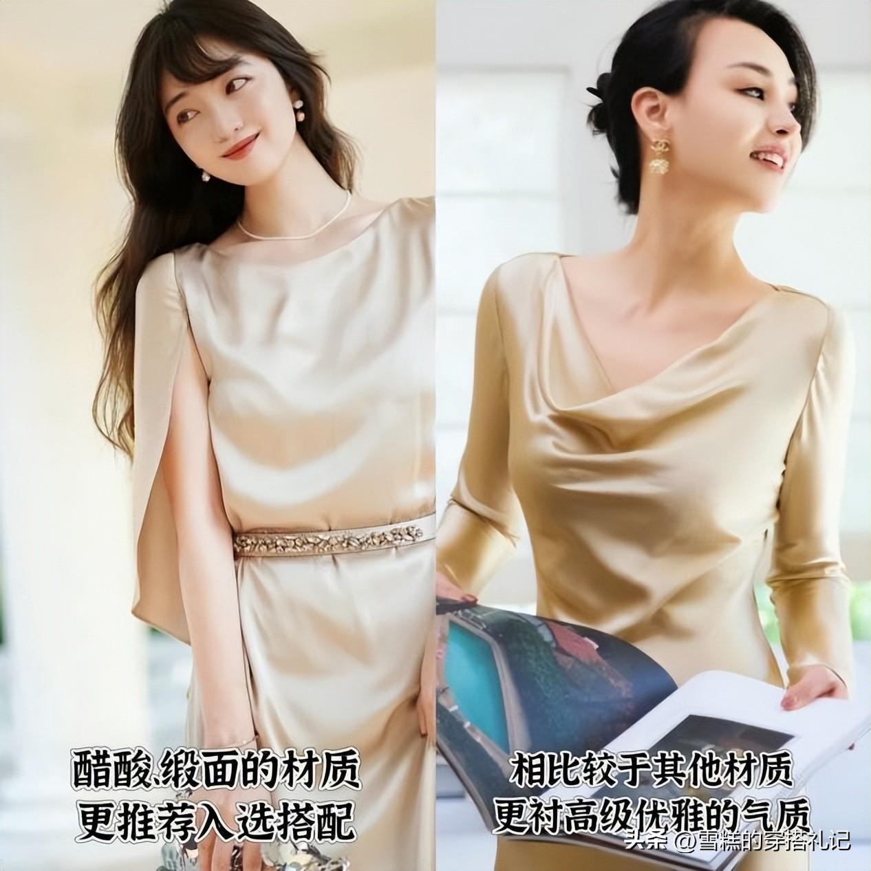 並且香檳的色調單品在進行運用的時候,尤其是在中年階段的話還是非常推薦大家可以直接運用絲綢或者是醋酸,這樣的面料從質感上而言,能夠與這一款色系高級優雅的質感完全的融合,瞬間在視覺上提升我們本身的品位以及氣質狀態哦。
