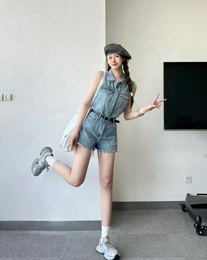 這一套牛仔套裝,對於懶人來說,那可是太合適了,牛仔短褲+牛仔馬甲,加上一雙老爹運動鞋,減齡青春又滿滿的少女範,銀灰色的老爹鞋,可太顯復古和百搭了,舒適度也非常不錯。