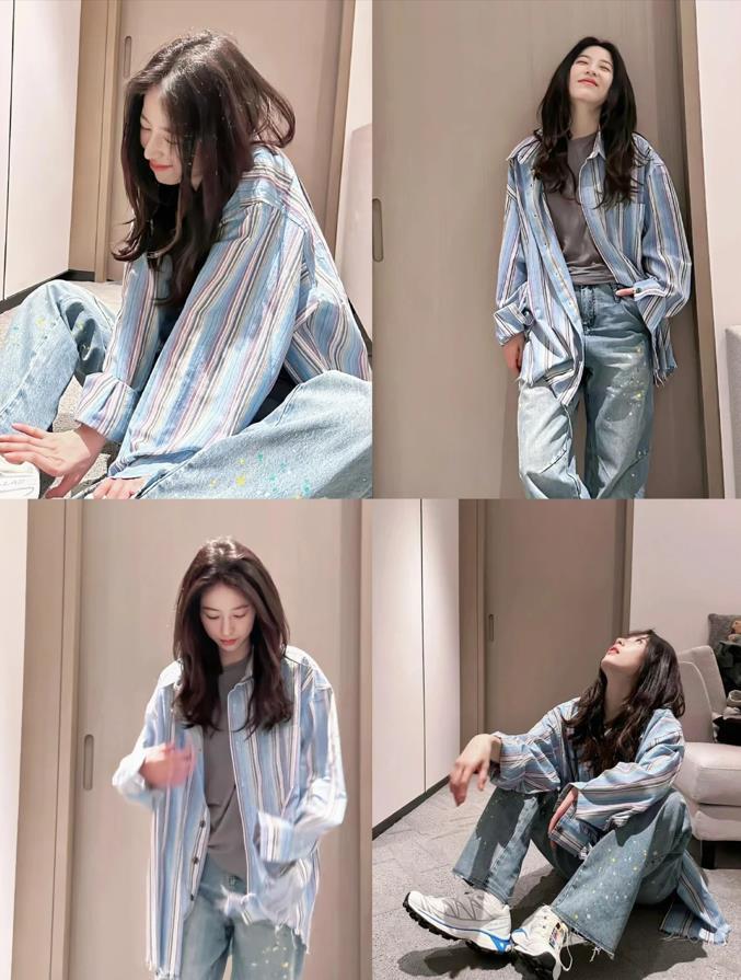 長袖襯衫,在進入初秋後,可是非常受歡迎的,微涼的秋季,在裏面疊穿多一件短袖t恤就行,既能保證一定的溫度,又很時髦。學習下週姐的這套,鬆弛感十足的穿搭,條紋款式,可太時髦顯瘦了,喜歡休閒風穿搭的姐妹,完全可以借鑑起來。