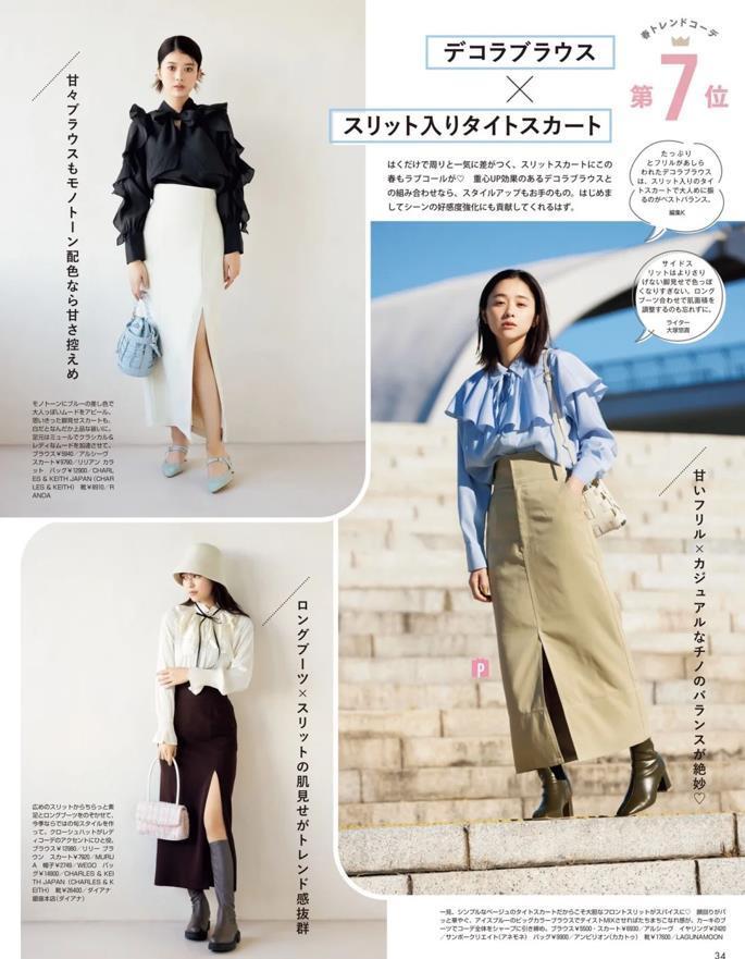 選擇與西裝顏色一致的半身短裙來配,減少了西裝外套帶來的嚴謹和過於正式。