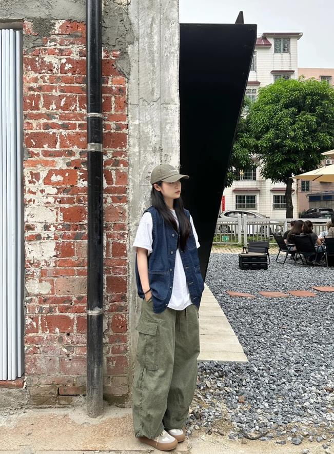 牛仔馬甲可是很經典時髦的一種上衣呢,有些休閒的款式,穿起來可耐看了,還有些小帥氣,與白色短袖t恤疊穿一起,輕鬆增加了層次,搭配一條工裝褲,整個人看起來也太酷帥了吧。