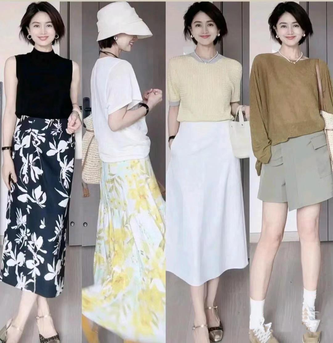 40+的女生,有一點豐滿的身形,越發出衆的氣質,讓她們洋溢着十足的魅力。比如寬鬆西服外套、可以搭配修身吊帶裙。
