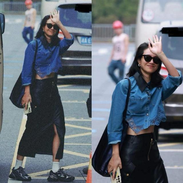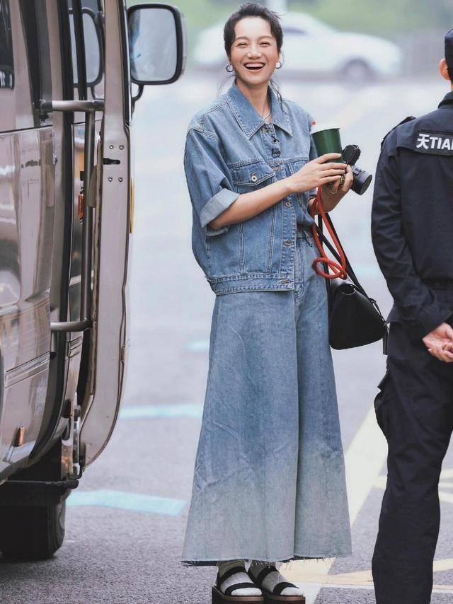 用來搭配牛仔半身裙,相當不錯。譬如朱丹這身造型,不僅減齡效果顯著,一下子年輕了十來歲,還看起來時髦又好看。