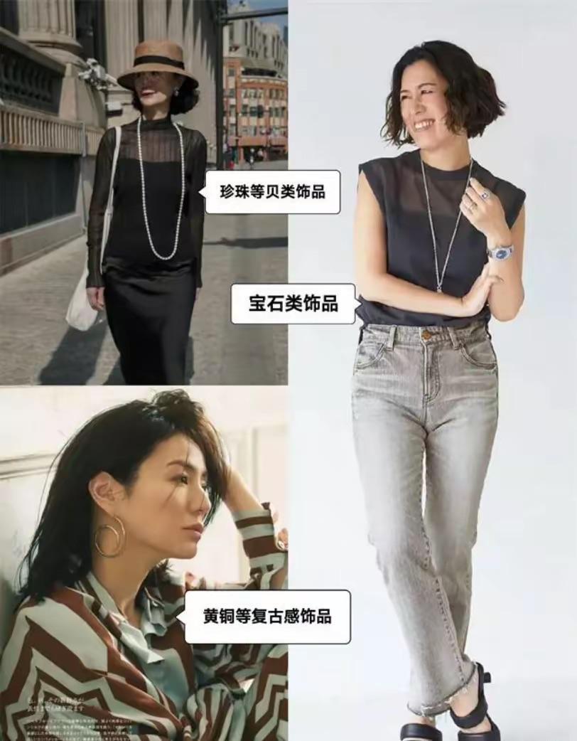 除了珍珠項鍊,還可以嘗試寶石、復古感的黃銅首飾,都是更貴氣又不張揚的屬性。可以讓大齡女性的穿搭,更顯從容體面。