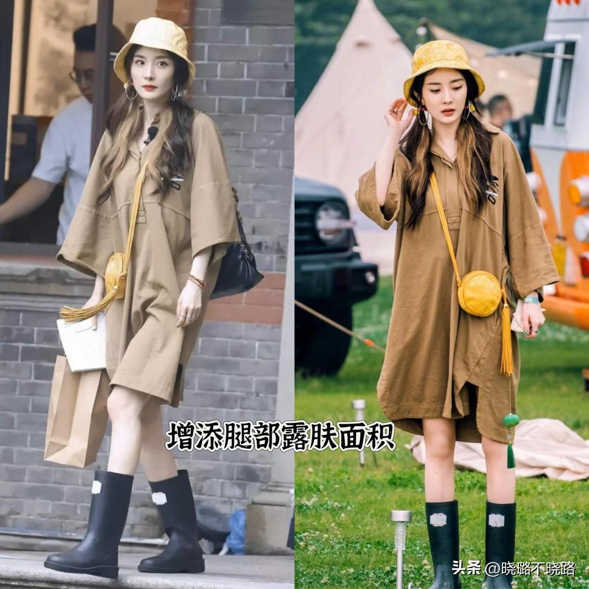 誰能想到,看上去平平無奇的雨靴,竟然是凹造型的不二之選,而且,一年四季皆可穿!楊冪的雨靴造型,呈現出來的時尚感就很強烈,配各種各樣的單品,反倒提升了雨靴的優勢。
