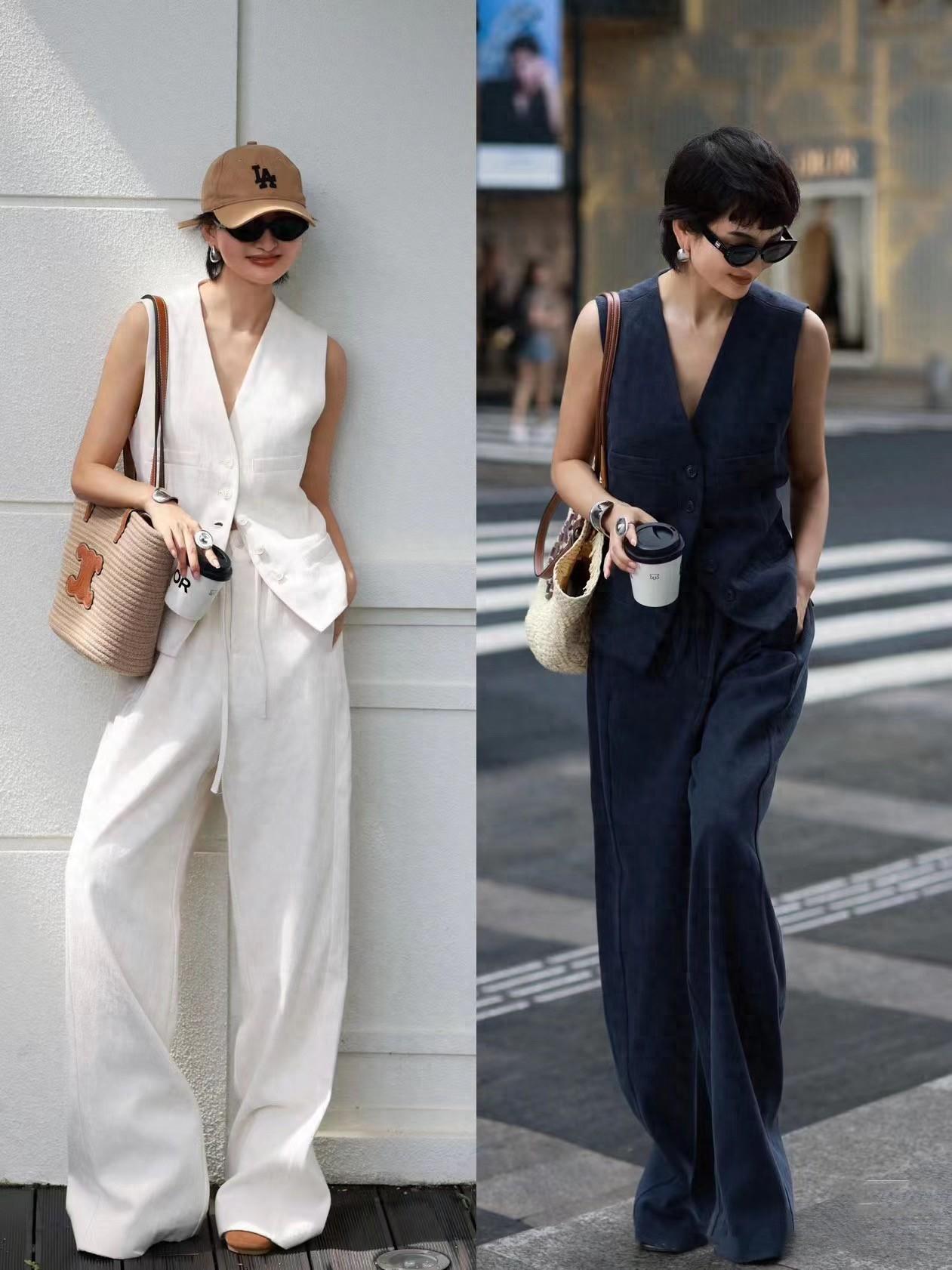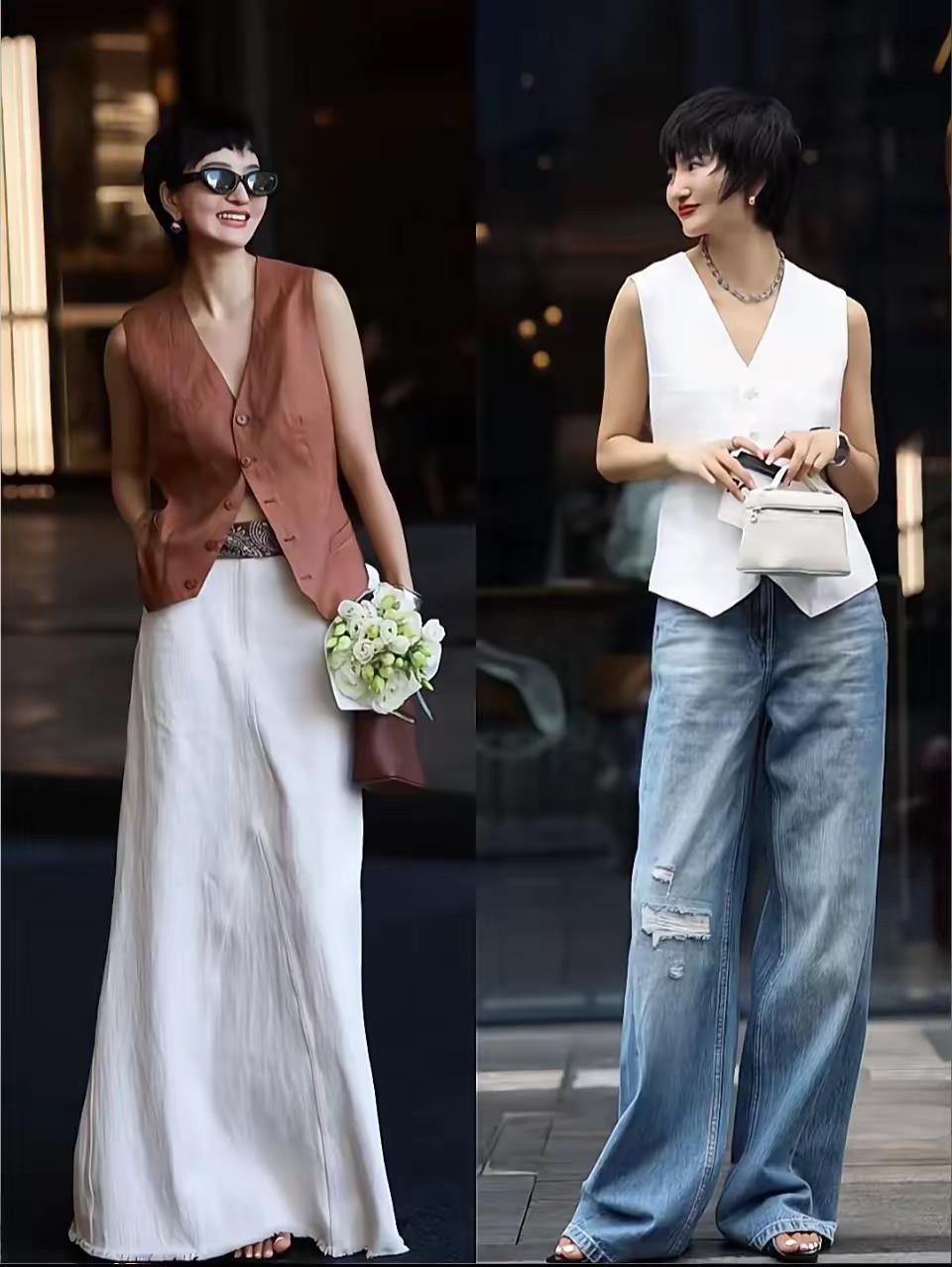 入秋後的小馬甲,配高腰的長裙、或者直筒的牛仔褲,都給我們的穿搭加分。尤其是小馬甲+直筒褲的搭配,酷颯又精緻。
