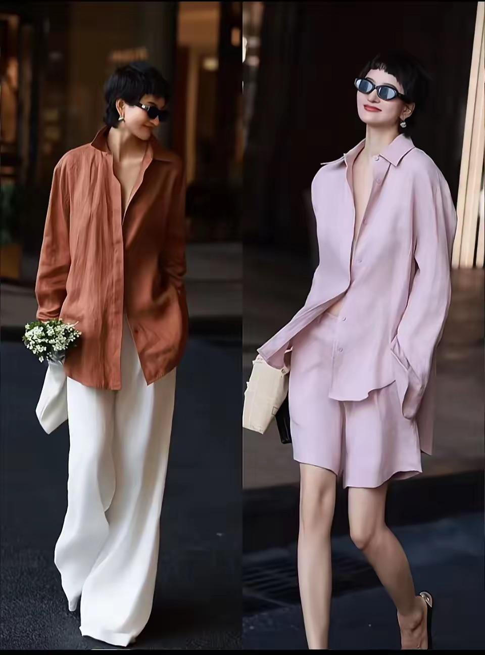 順色的搭配,也爲我們的整體穿搭提氣質。40+女生想要時髦貴氣的美,可以選擇高級垂順面料的順色搭配。