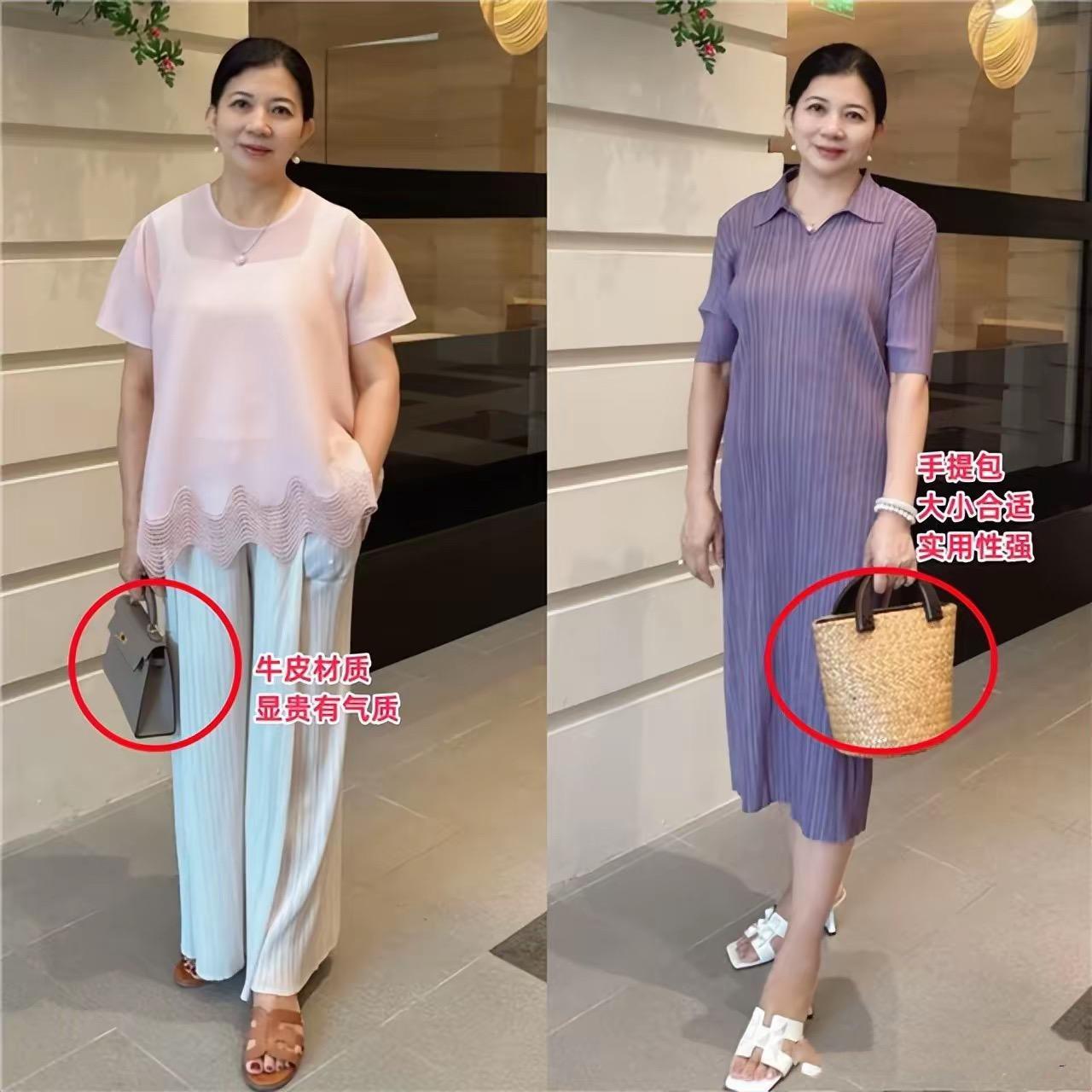 比如牛皮材質的手拿包,小巧精緻的款式讓素雅穿搭更顯貴。而草編手提包,就更適合度假穿着,與寬鬆的連衣裙更配。