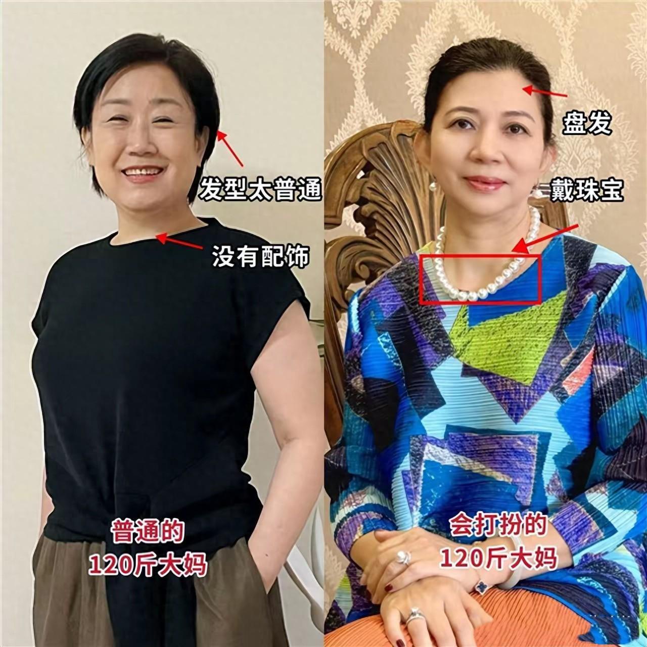 沒有對比,就沒有傷害。同樣是媽媽輩的年紀,120+的體重,會打扮和不會打扮的女人,視覺對比真的好明顯。