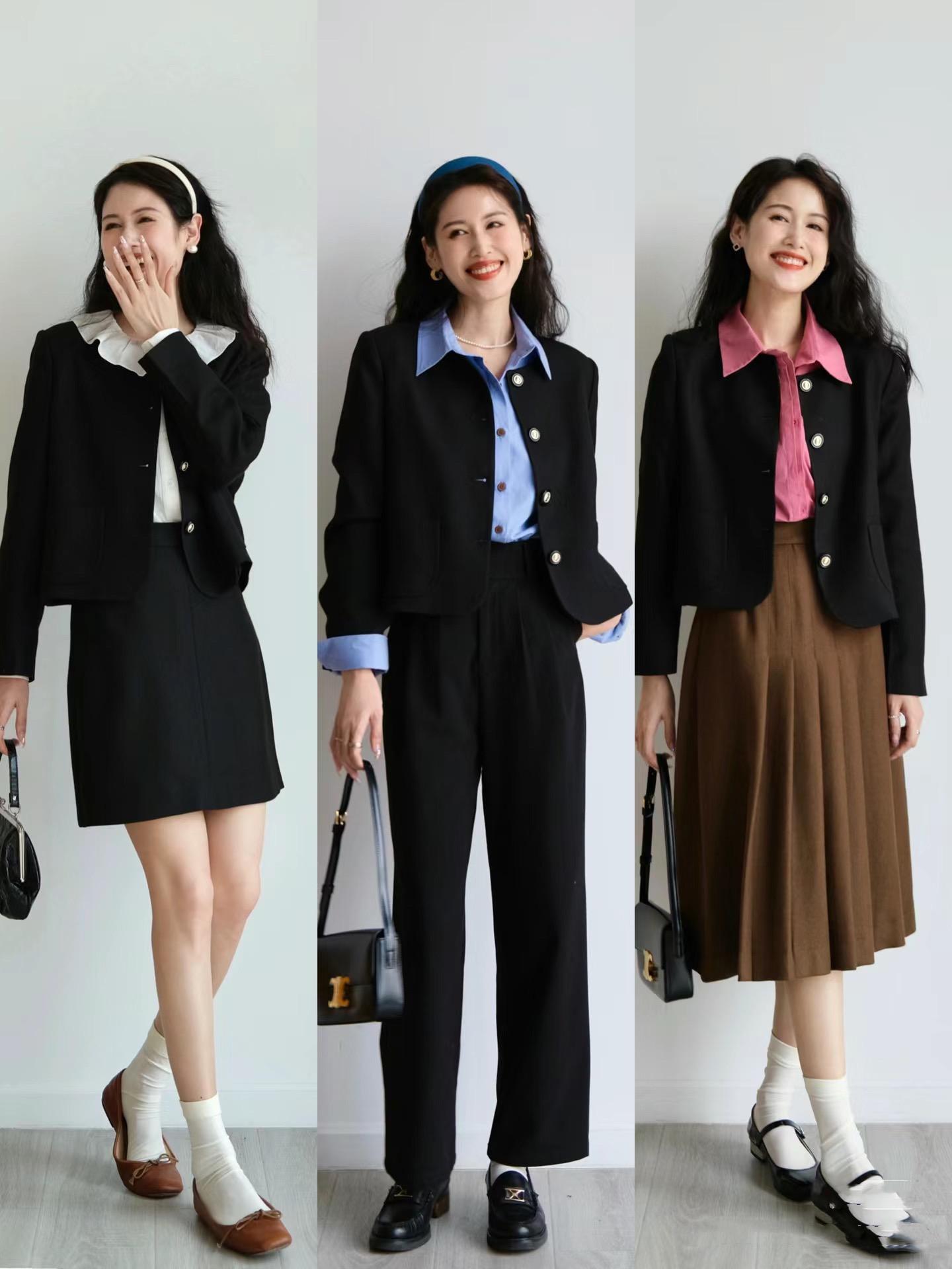 短款小香風外套,更適合上半身比較瘦一點的女生。寬鬆西服外套包容性更強,即便身材是有一定的肉感,也可以完美駕馭。