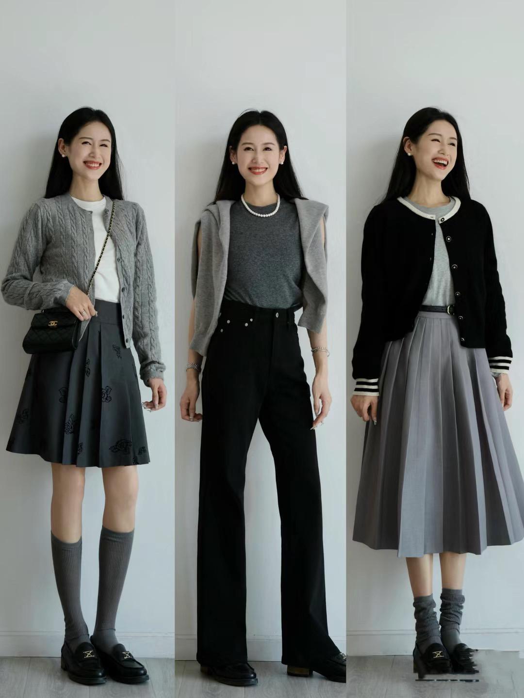 面料軟糯的針織衫,相對厚重一點的款式,呈現出更時尚的氛圍。比如軟款的針織衫,配上高腰的直筒褲、或者高腰的半身裙,都很減齡大方。