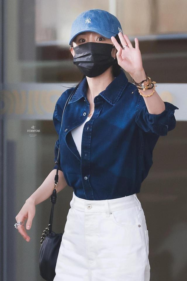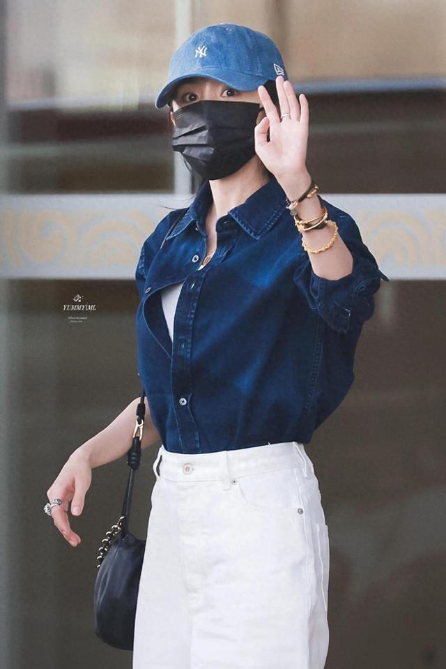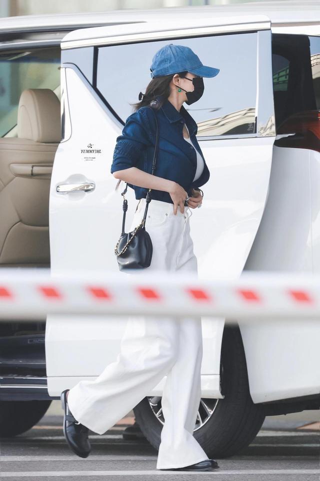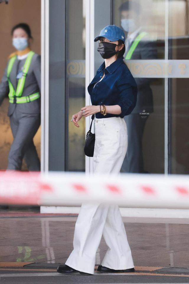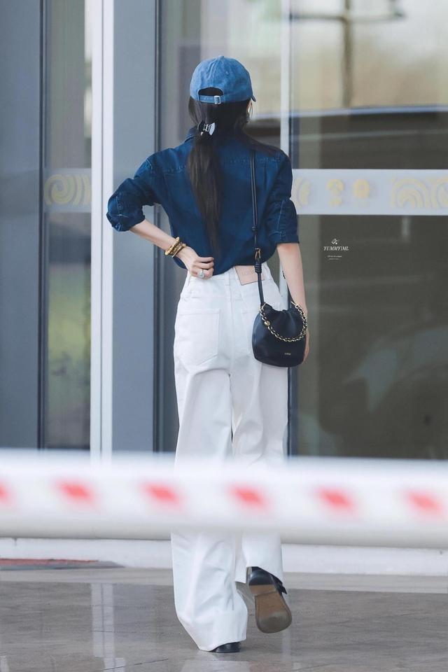 楊冪又帶火了一種顯高穿法:叫“牛仔襯衫+小白褲”,時髦又減齡