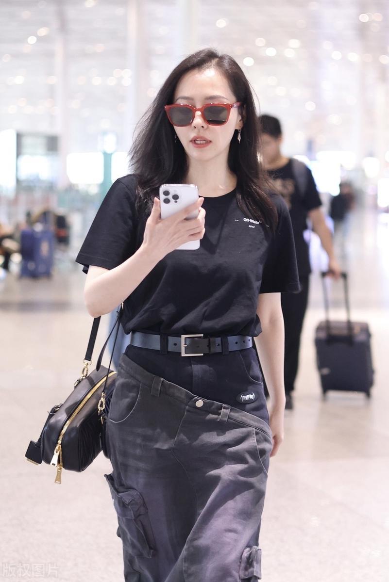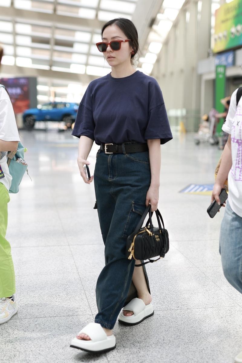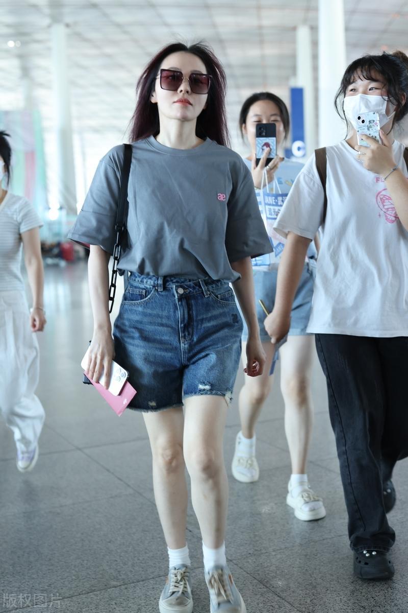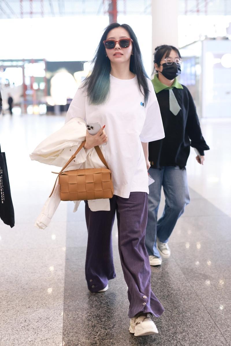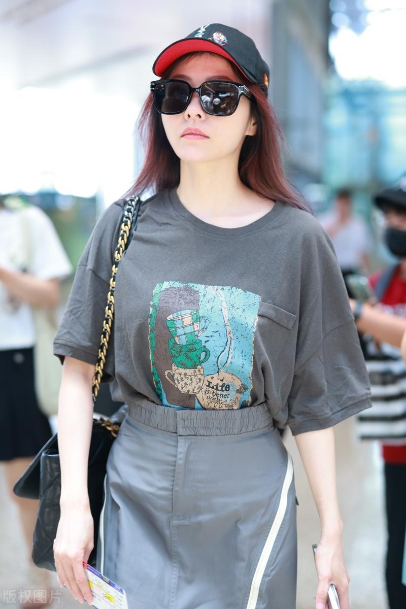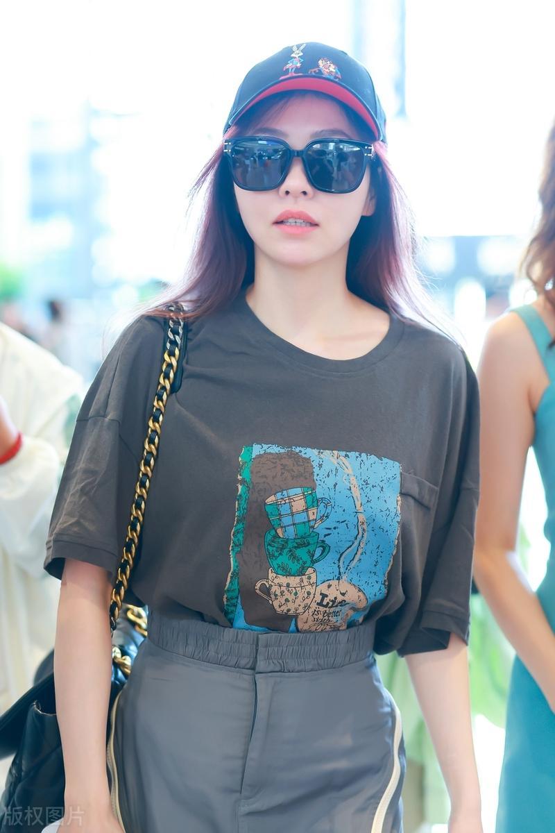 張靚穎的日常穿搭,雖然與舞臺造型不同。即便沒有過分追求性感、傲人的上圍也是非常醒目。穿一件寬鬆T恤,也散發着熟女氣質。