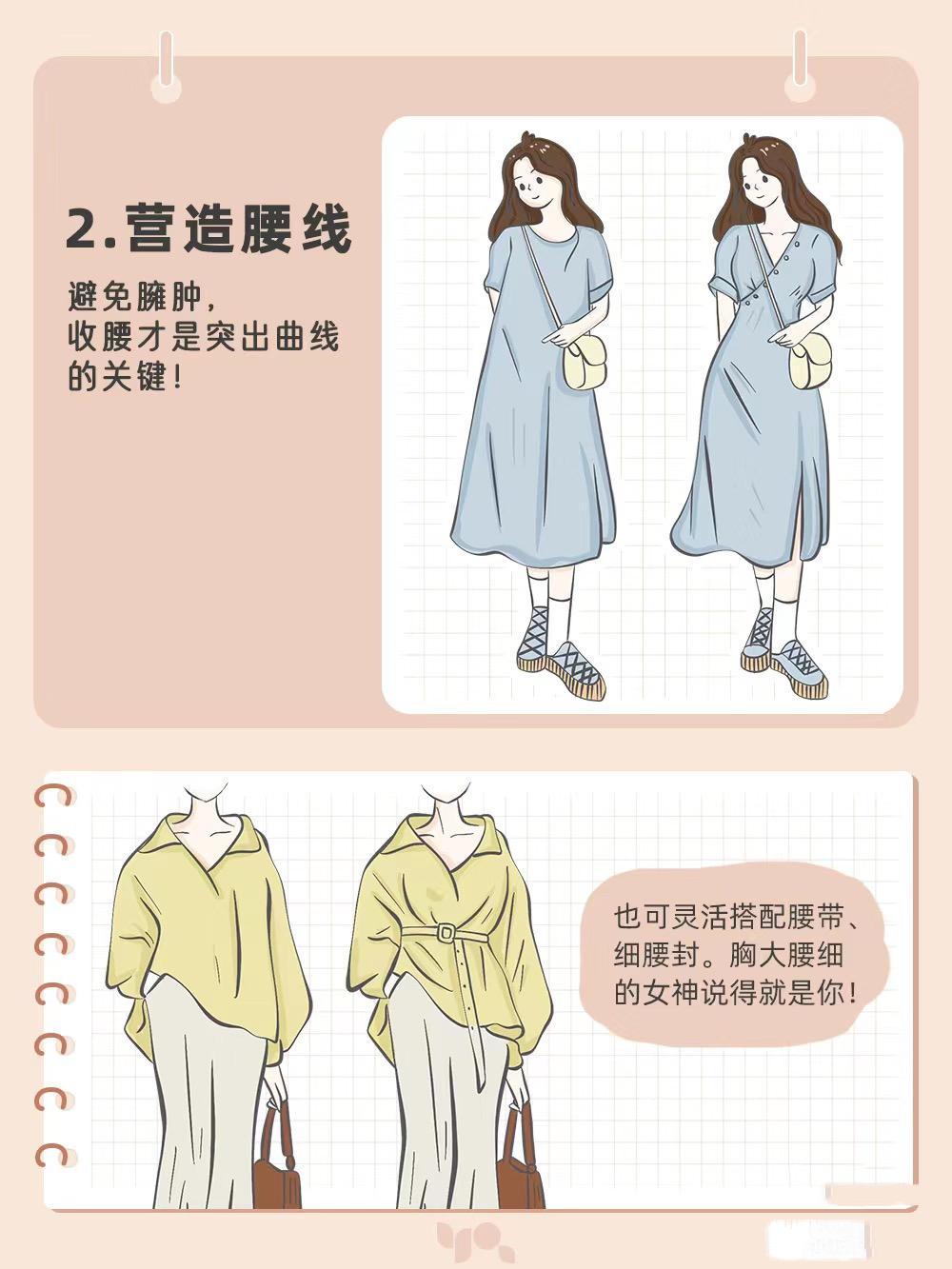相對於寬鬆的A字形連衣裙,高收腰的連衣裙更優雅顯高。當然我們穿寬鬆襯衫、T恤的時候,也可以配腰帶、細腰封,胸大腰細的女神範就出來了。