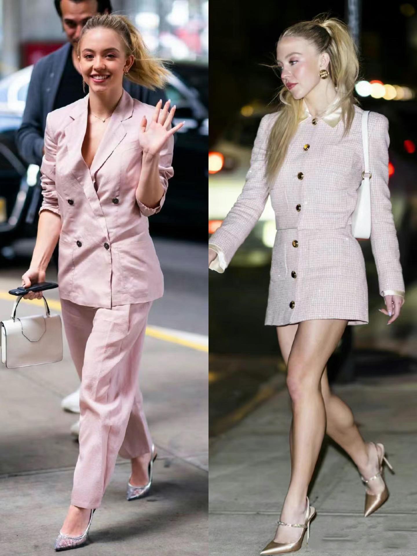 看sydney sweeney的穿搭,就會發現他真的是小個子大胸妹子的穿搭模板。入秋後一件針織衫,貼身的款式解開紐扣,就更輕盈顯瘦。修身針織衫的V領,拉伸頸部線條、洋氣又迷人。