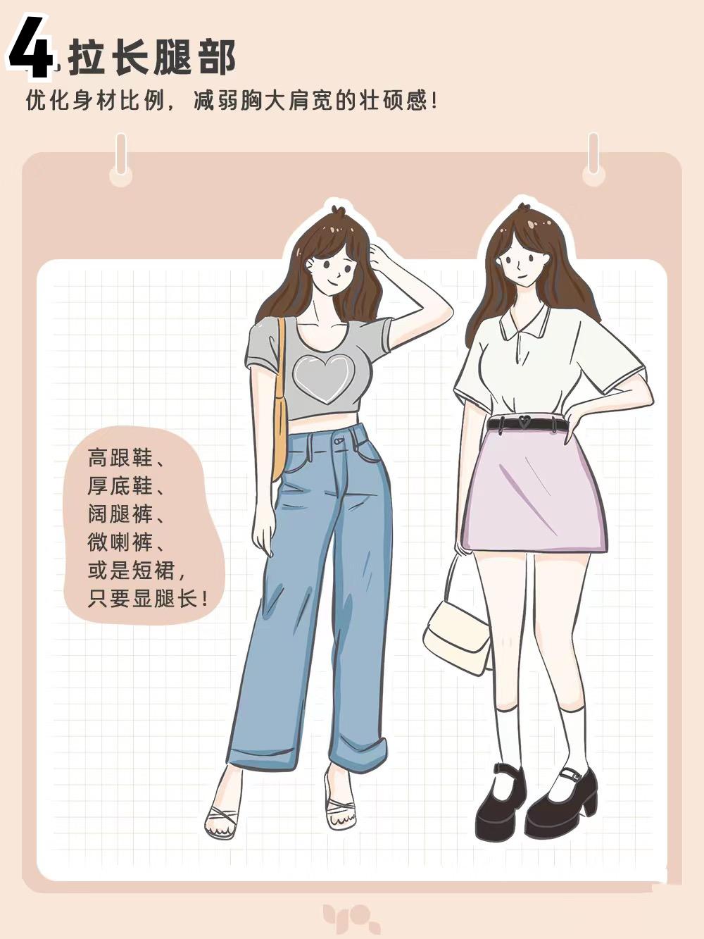 4、拉長腿部線條,減弱胸大肩寬的壯碩感