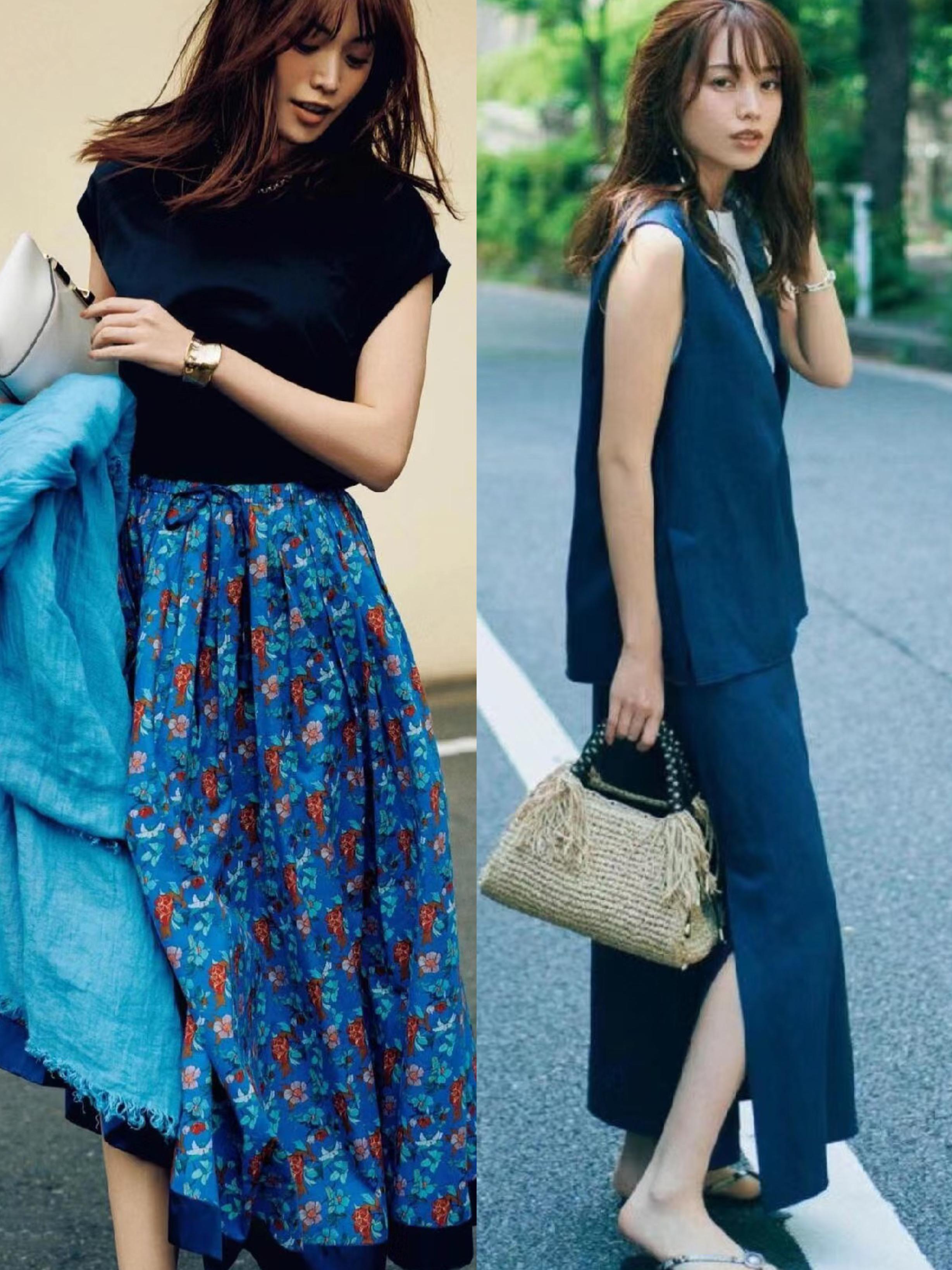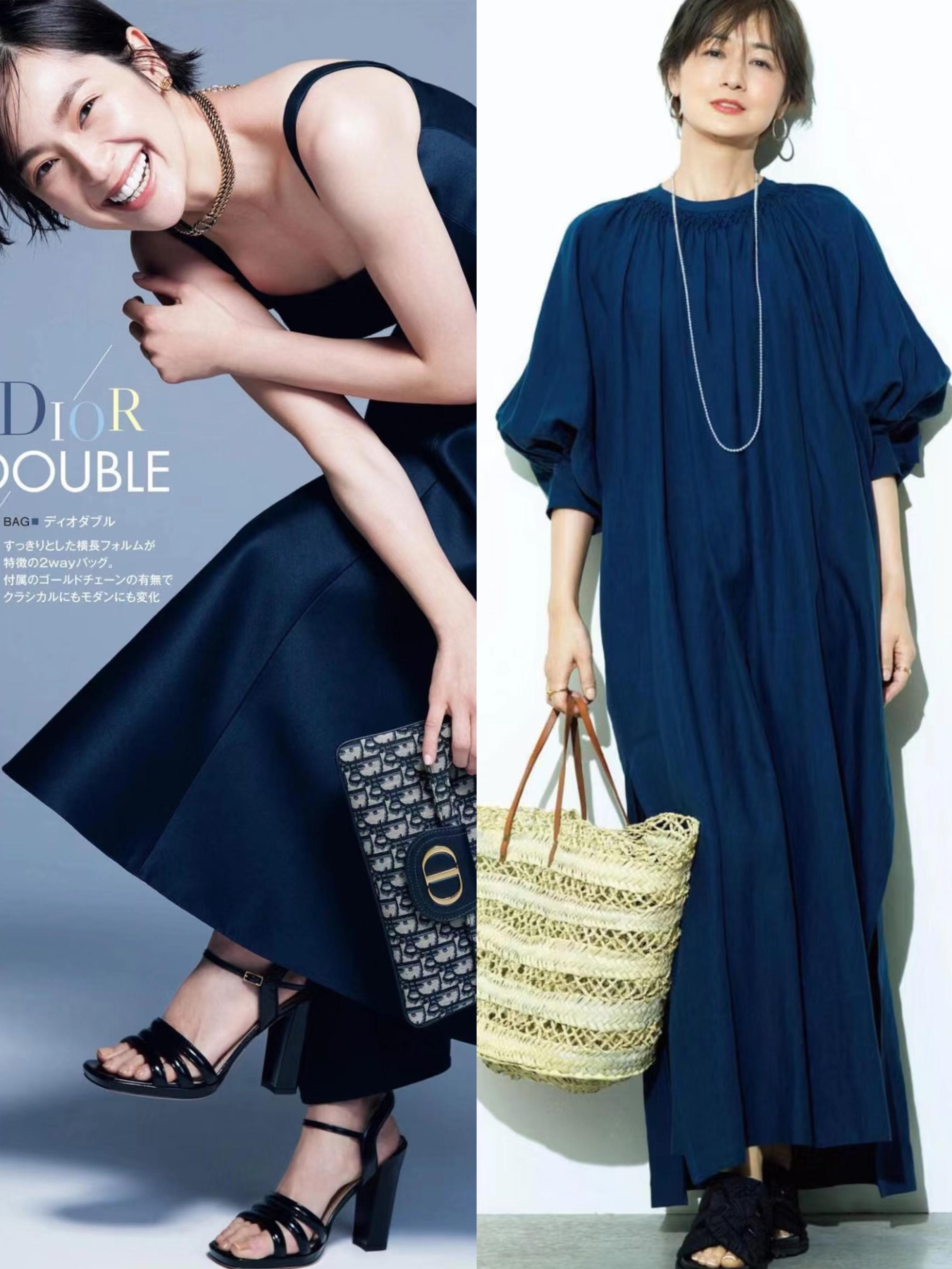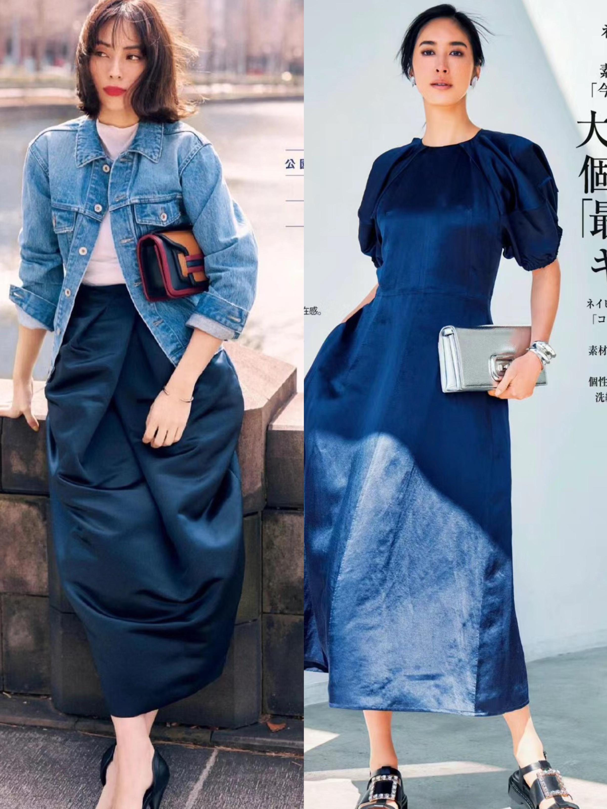 這時候深井藍的長裙、或者套裝,都可以讓我們的穿搭簡約不俗。不管是絲滑、還是挺闊的長裙,遇上深井藍都更霸氣。