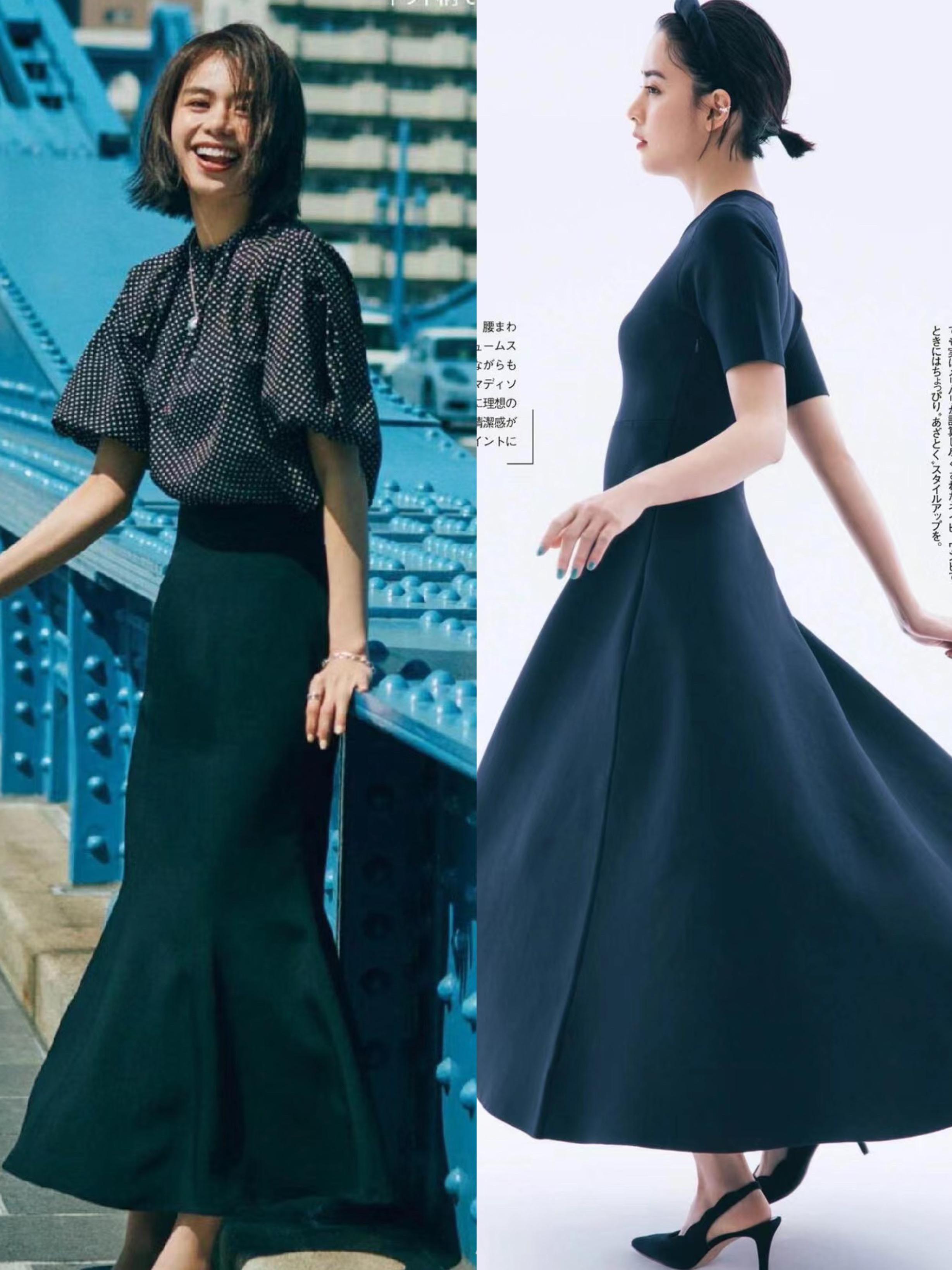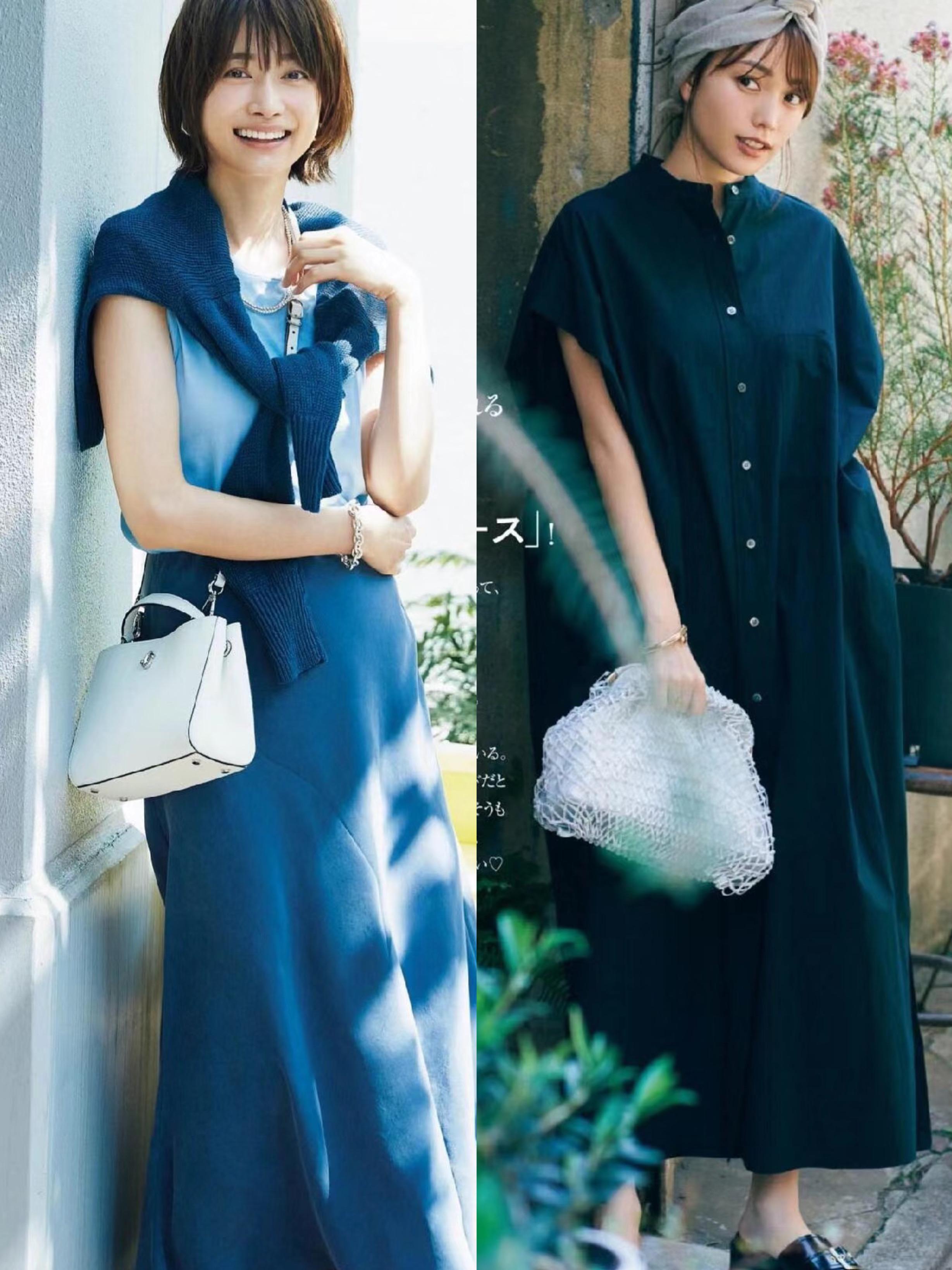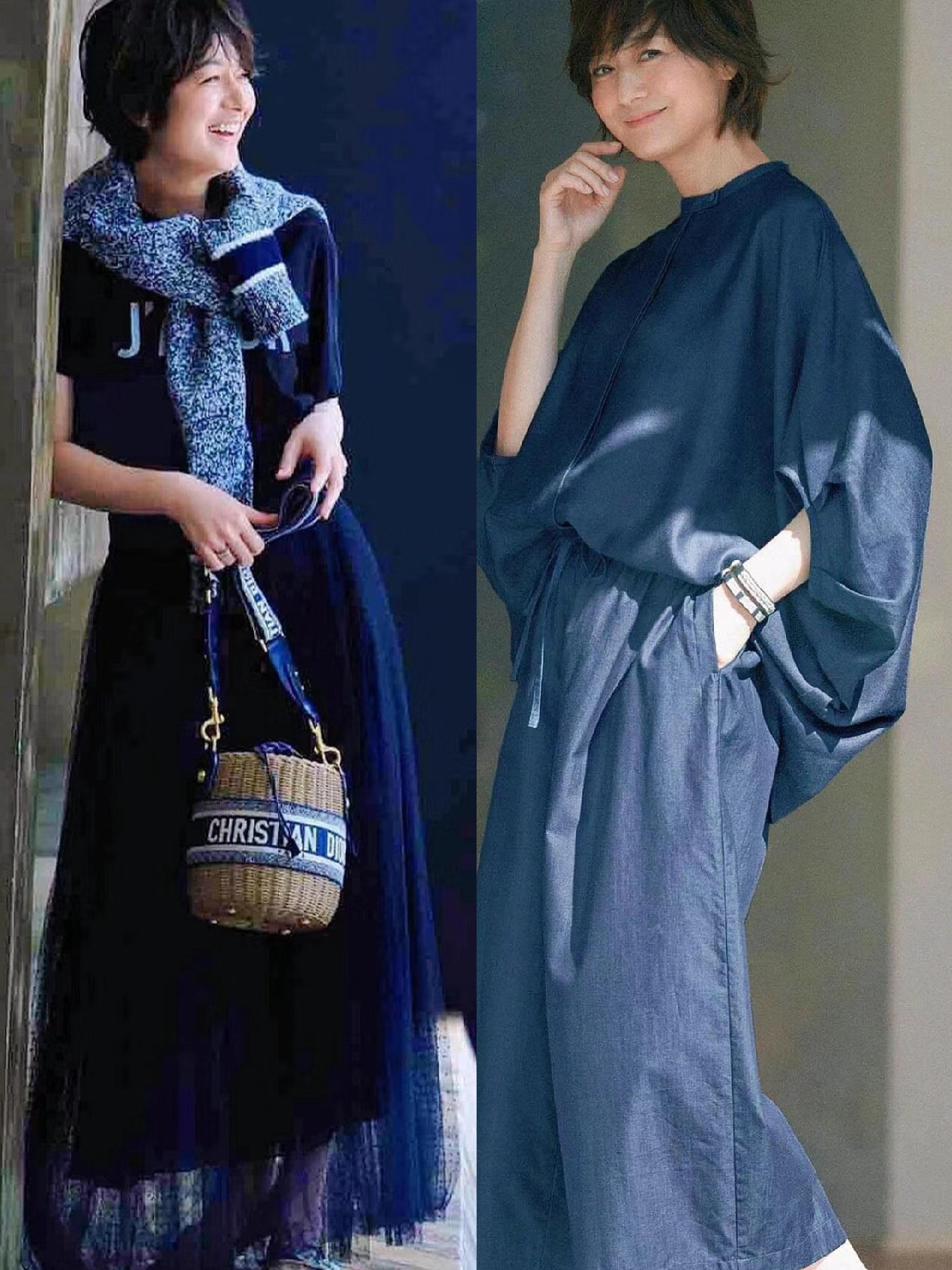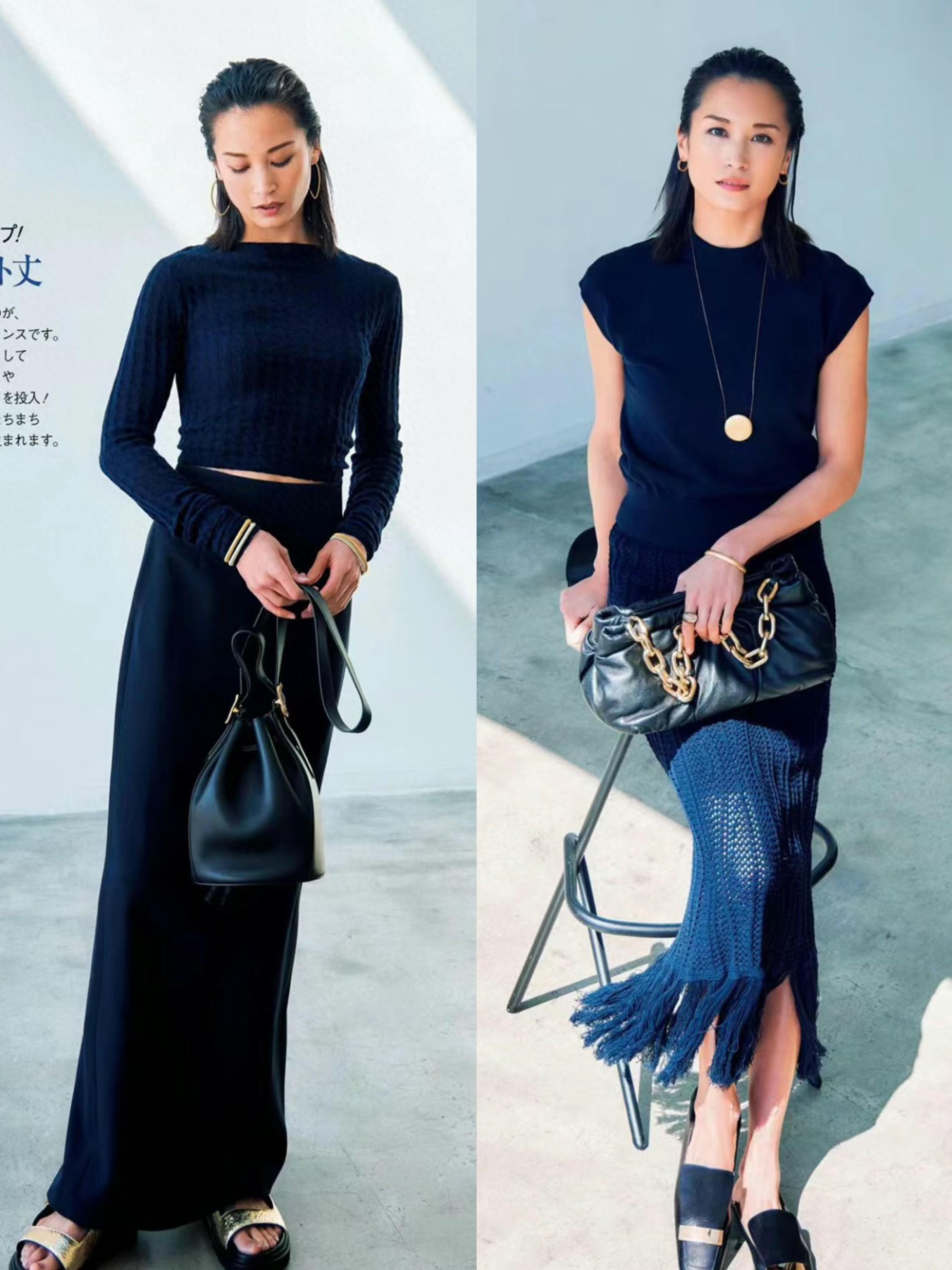 這時候深井藍的長裙、或者套裝,都可以讓我們的穿搭簡約不俗。不管是絲滑、還是挺闊的長裙,遇上深井藍都更霸氣。