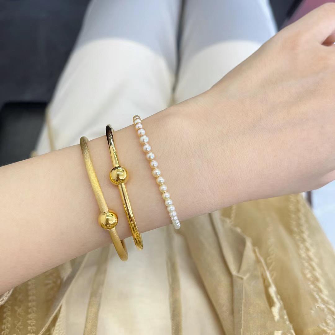亮面的手鐲,工藝簡單、簡單又時尚。金燦燦的光澤感,非常貴氣,更適合普通人。