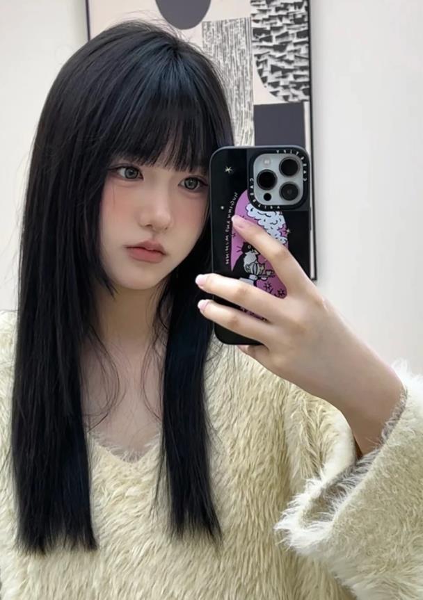 一刀切的短髮,今年可是非常流行呢,不過這次的不是齊耳,而是齊下巴,搭配空氣劉海,把整張臉都進行了修飾,很瘦臉又不失甜美與可愛。這種短髮,對於額頭圓臉肥的姐妹,還是比較友好的。