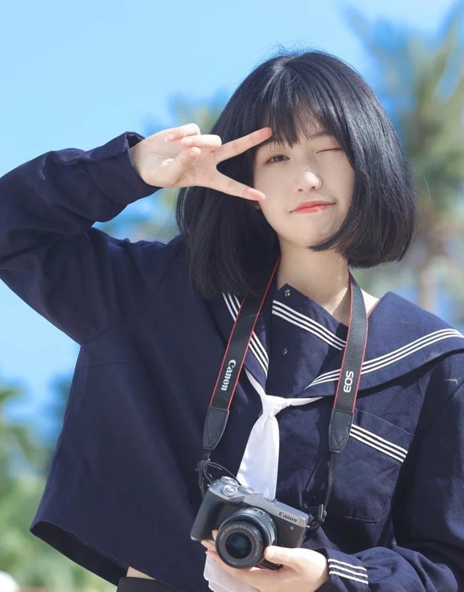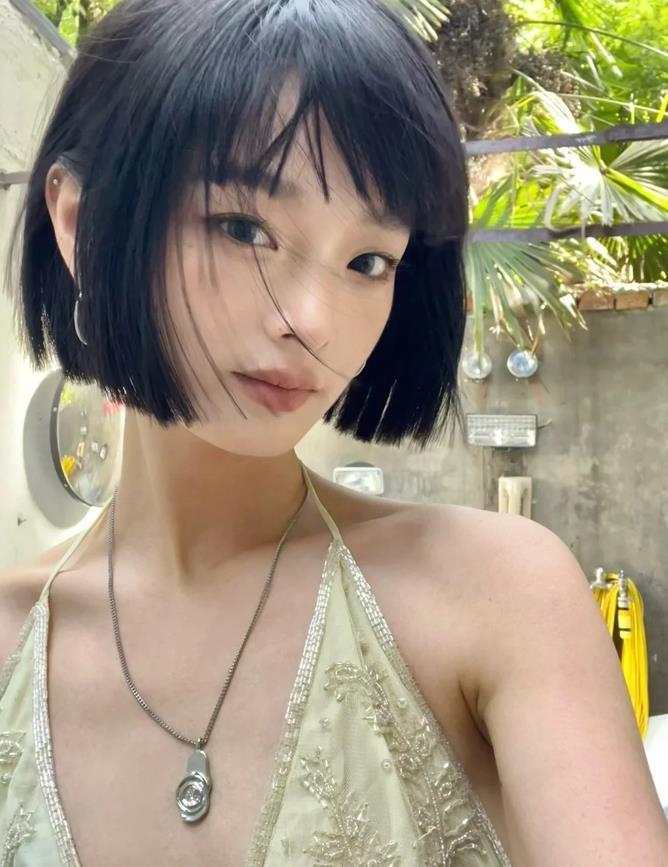 短髮真的好適合夏天啊,空氣齊劉海+齊耳波波頭,因爲搭配了劉海,所以額頭圓的女生也可以剪,起到了一定遮掩的效果,記得要給頭髮染個髮色,這樣才能更時尚,也顯膚色。