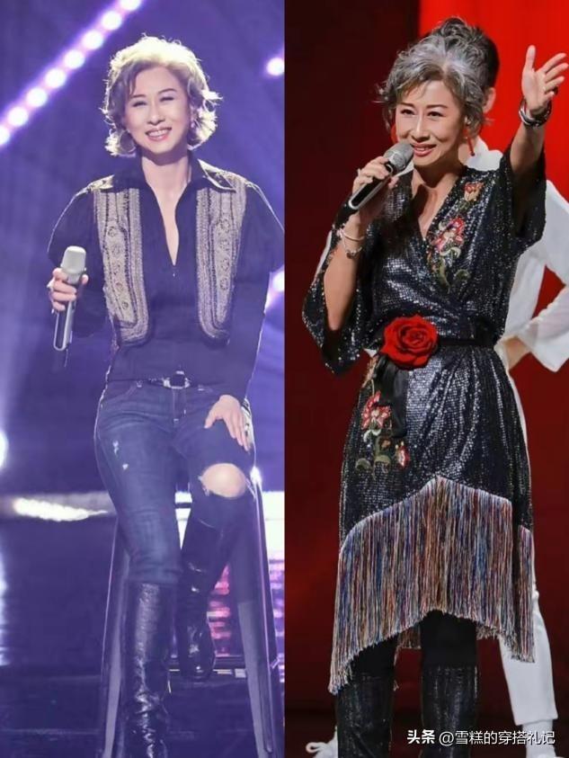 當然,這並不是說過了60多歲的女人不能穿鮮豔的色彩,只是很多女人不懂得怎麼穿高級的彩色系,我們要學會像葉倩文一樣,讓一種色彩來點綴你裙子的全部,單色系的彩色不會與其他顏色有任何的衝撞感,