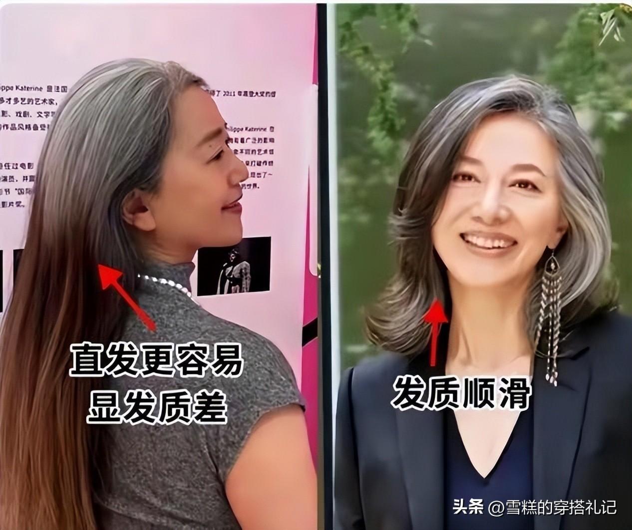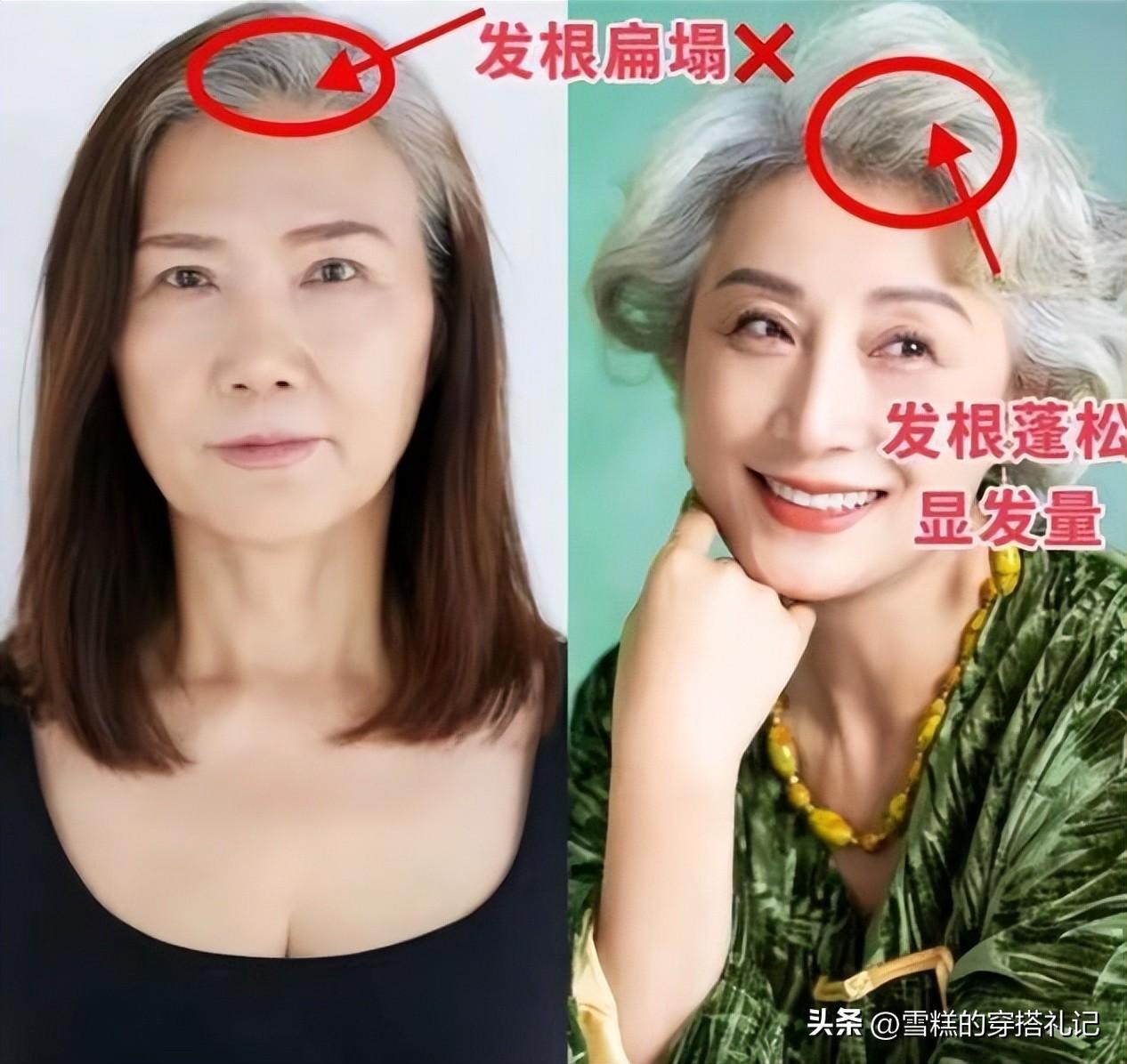 那麼就有很多奔六奔七的女人,其實就應該轉變自己的審美觀念,並不一定要把自己的白頭髮染黑才叫做年輕。人到了一定的年齡階段以後,心態以及閱歷都有了提升,那麼你的形象一定不能和年輕的時候一樣,白髮也可以美的很自然。