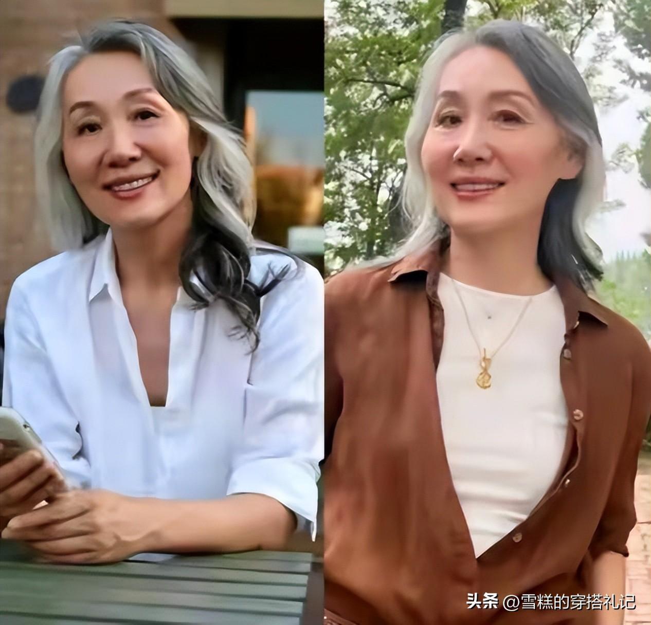 女人到了奔六和奔七的年紀,有白髮是真的再正常不過了,你並不需要去盲目的染頭髮,把髮質搞差了以後,反而容易顯老氣。