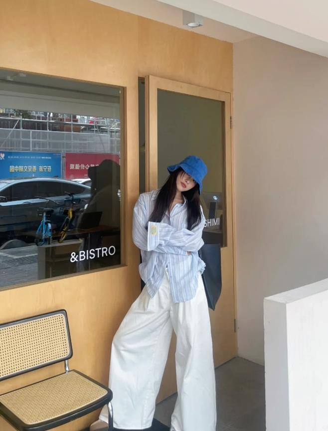 鬆弛感的搭配,在色彩搭配方面也是和其他着裝不同,這種穿法色彩比較低調,多數採用中性色、低飽和度的配色,如米白、淺灰、淡藍色,這樣的顏色更百搭時髦。