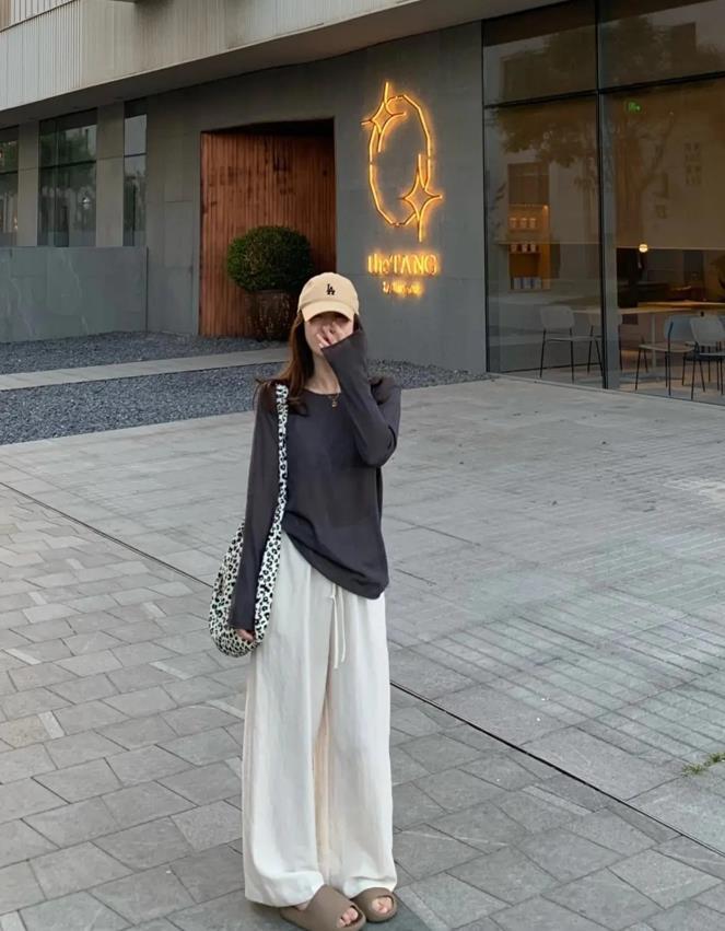 上下都是寬鬆版型的衣服,穿得舒適自在,還對身材沒有一點約束感,整個配色很低調大方,灰色+白色,就是很耐看和時髦。褲子的版型和垂墜感都超好,誰穿誰顯瘦,出門隨便踩着一雙涼拖鞋就行了。