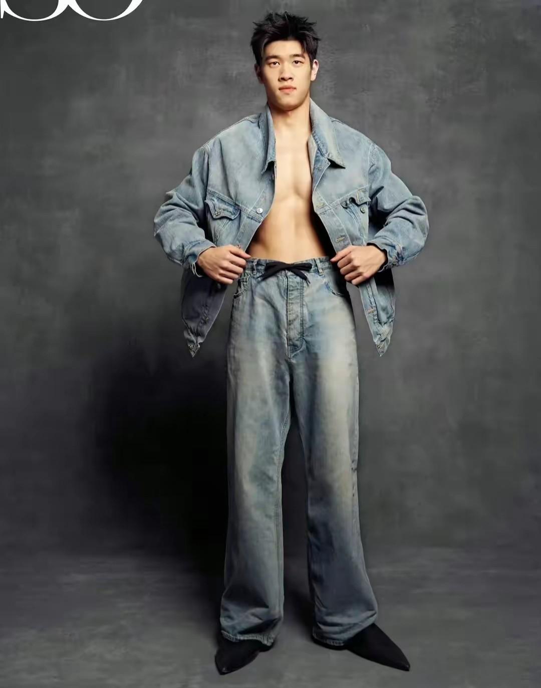 運動員出身的潘展樂,身材自然好得沒話說,也正是因爲身材好,纔敢這麼穿牛仔套裝。