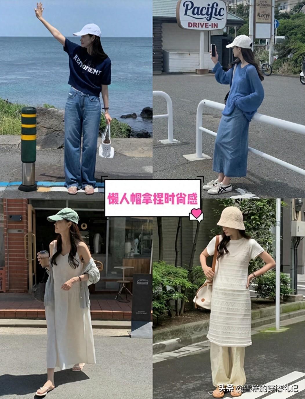 今年的穿搭中,不能只關注衣服之間的搭配,配飾的裝飾也很重要,特別是熱的季節,配上“懶人帽”遮陽又提升洋氣與好看~