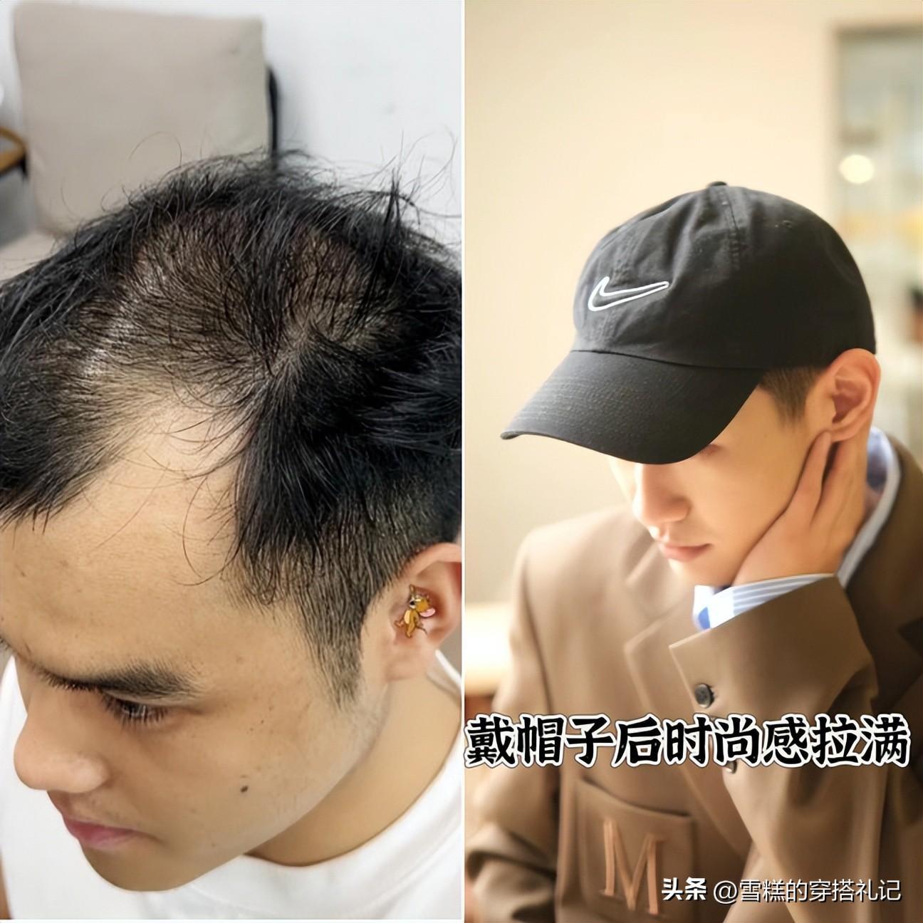 買假髮片有真實感,但是也需要花大量的時間打理,早上起來比較匆忙,甚至想要偷懶的男人,可以借用帽子來遮蓋大量少的問題。可以選擇的帽子款式有很多,走運動陽光風就選鴨舌帽,帽檐要跟額頭同寬,這樣子能形成陰影,顯得臉型小,想要嘻哈的風格就選毛線帽,不過會比較考驗臉型,國字臉的男人不要嘗試。