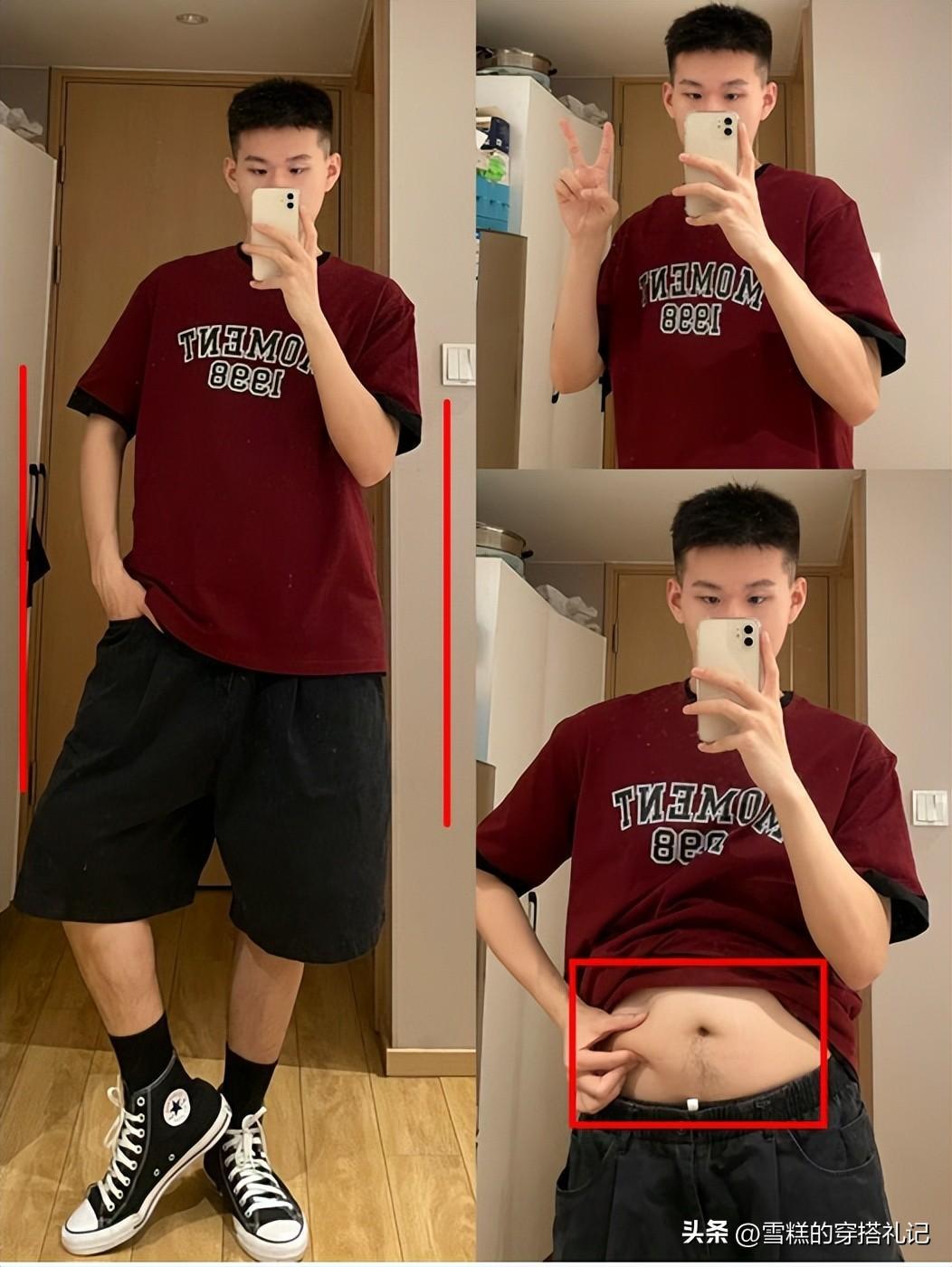 一件T恤不要穿修身有彈力的款式,直筒廓形的版型纔是正確選擇,它上身有垂墜感,下裝再配直筒褲,形成上直下直的視覺效果,其次這種穿搭對有小肚腩的男人非常友好,大肚子可以被這裏藏得無影無蹤。