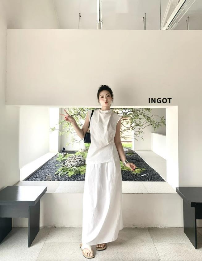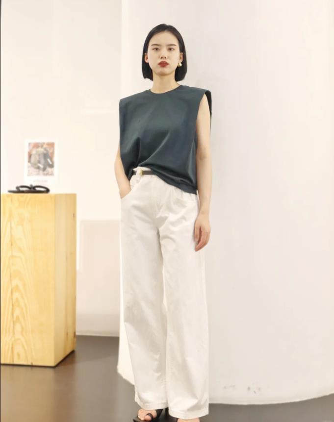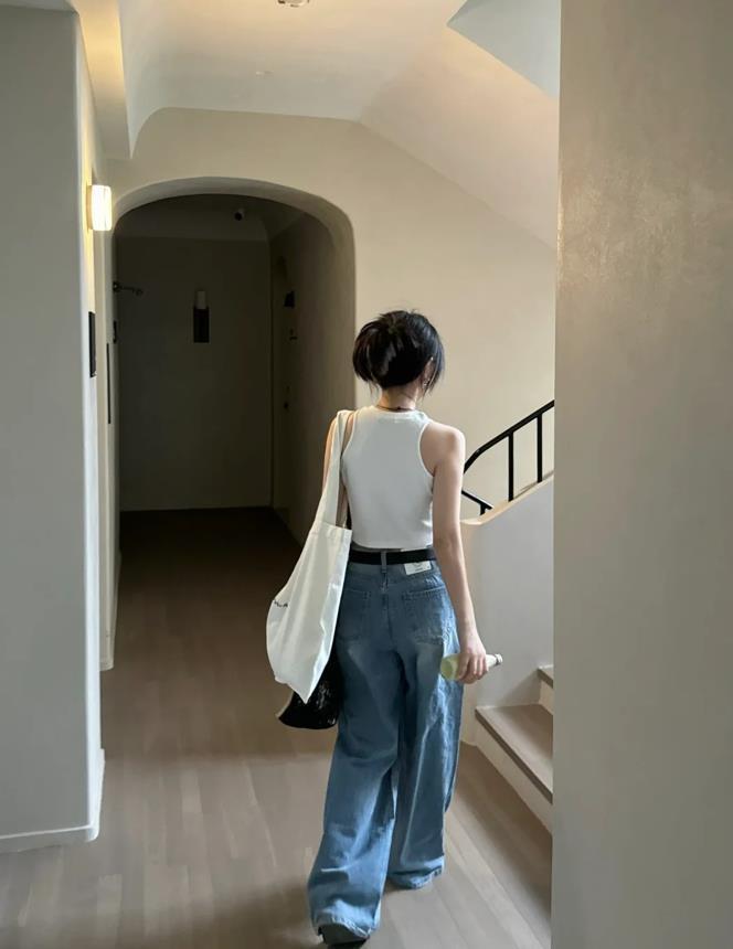 在這個夏天,無袖背心這件上衣可是很值得入手的,白色無袖背心,修身的款式,可以很好勾勒出完美的身段,再搭配起一條牛仔闊腿褲,這種垂墜感十足的褲子,加上寬鬆的褲型,可太顯瘦藏肉了。