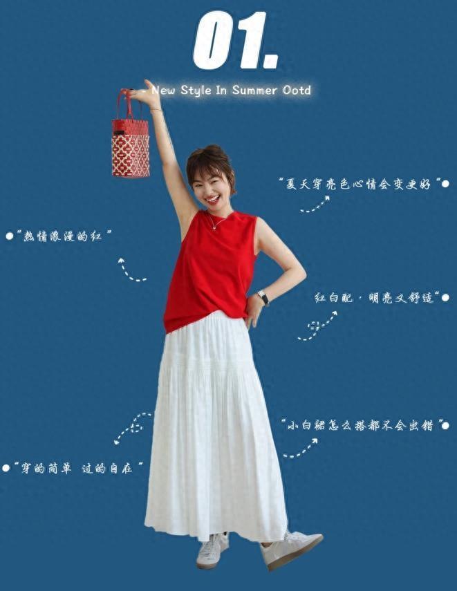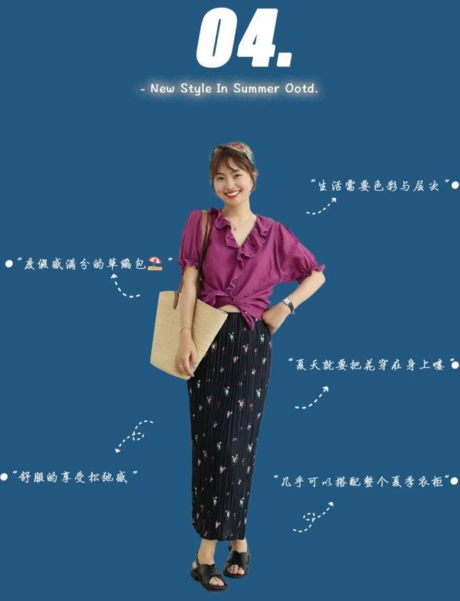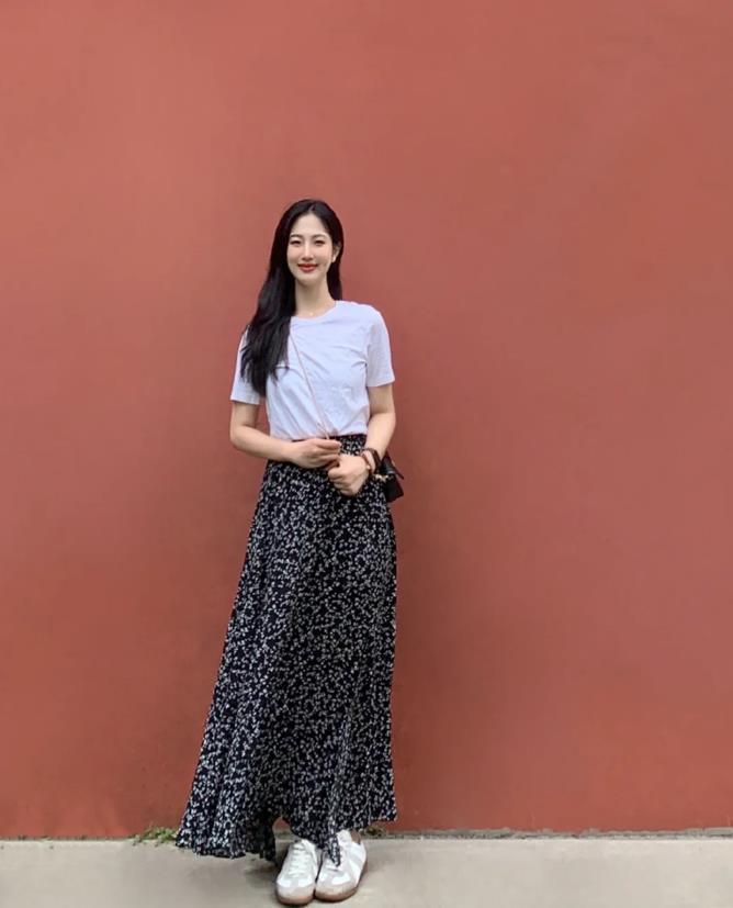 碎花半身長裙,真的是自帶浪漫氣息的,長度到腳踝位置,加上高腰的設計,穿起來後並不會壓低個人的身高。上衣只需簡單配一件白色短袖t恤就行,遵循一簡一繁的組合,實在是太顯層次感了,選擇一雙運動鞋來配吧,很休閒舒適。