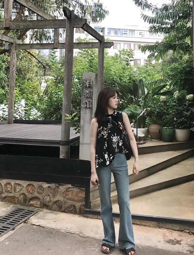 夏天,就這麼穿着出門吧,好看的掛脖碎花上衣,與牛仔微喇褲組合在一起,也太清爽涼快和顯瘦了,腳下再踩着一雙涼鞋,就又多了幾分舒適和自在。40歲的女人,這麼穿也是很合適的,完全沒有違和感。
