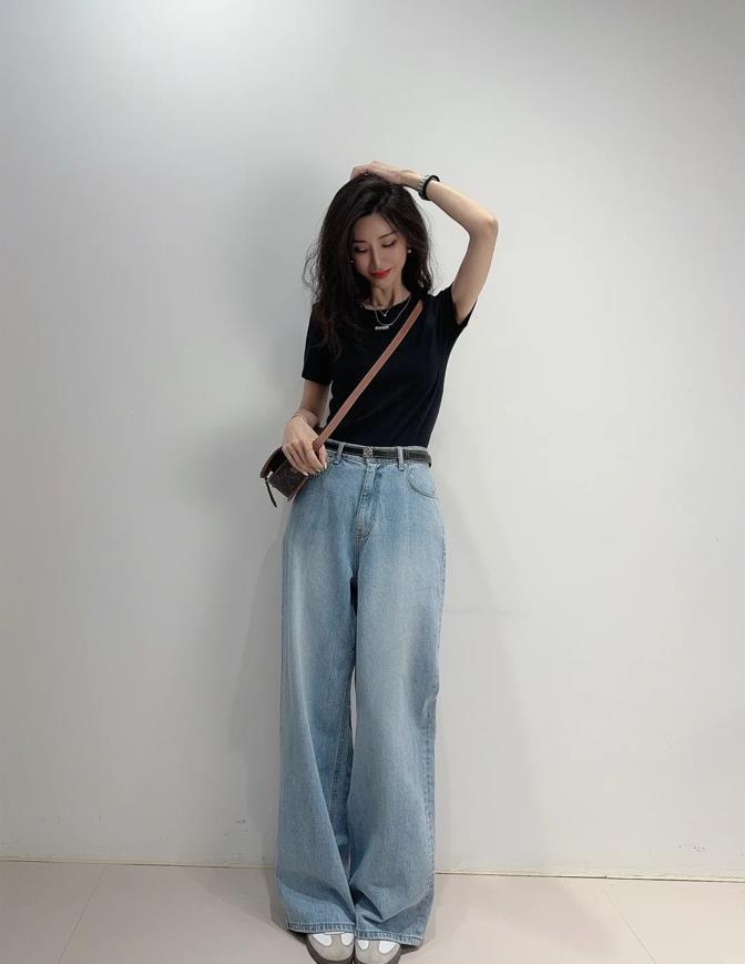 像牛仔褲這種基礎款又百搭的褲裝,相信在很多人的衣櫥裏都會有吧?不管是在什麼年齡,牛仔褲都可以被利用起來。牛仔直筒闊腿褲,這樣一條褲子,穿起腿長和顯瘦的,簡單配一件短袖t恤,毫不費力氣就可以穿出時髦感了。