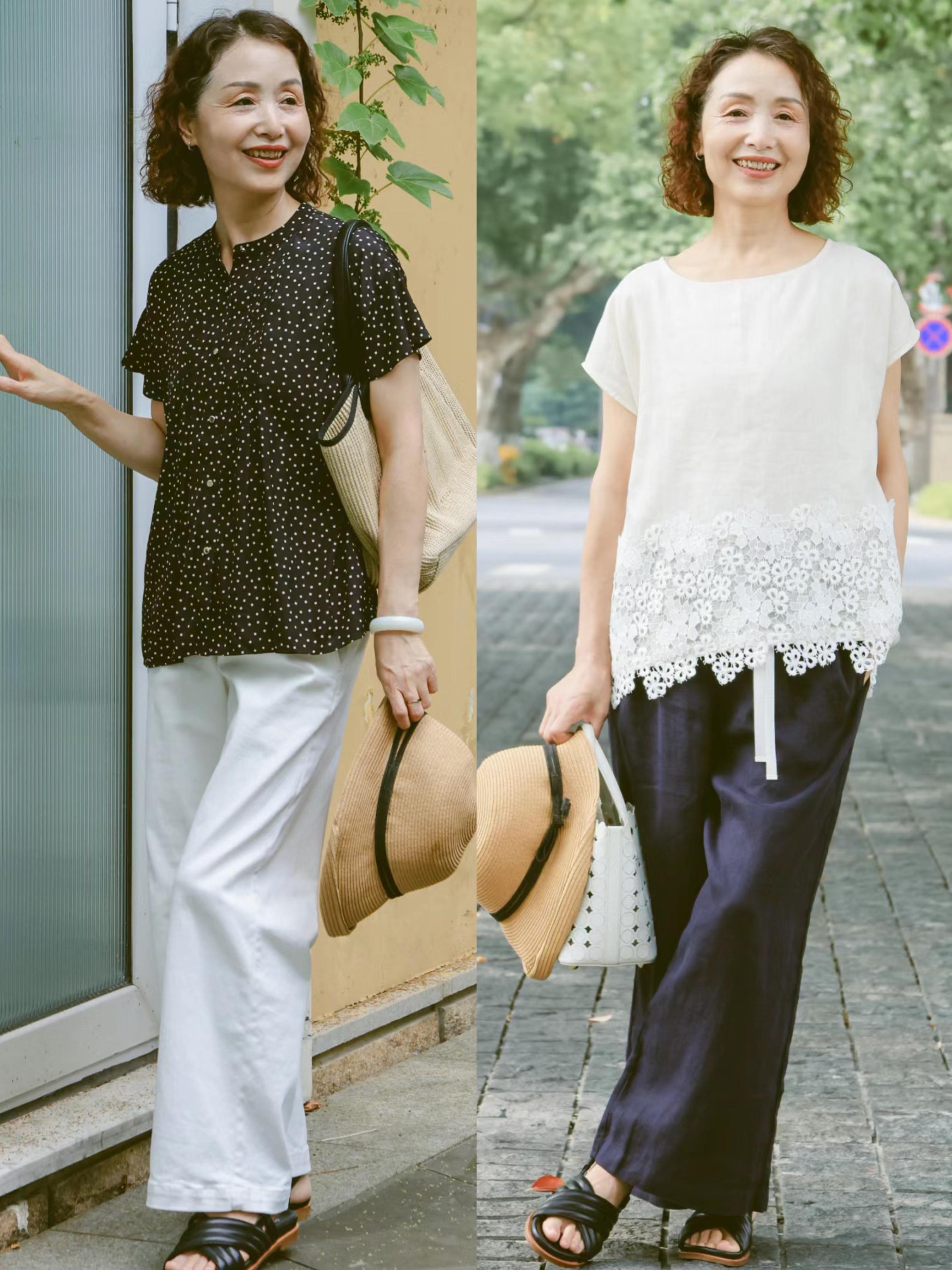 60+的女人,在選擇褲裝的時候,儘量搭配及踝的長褲。尤其是寬鬆且挺闊的直筒及踝褲,書寫着成熟女人的大氣之美。