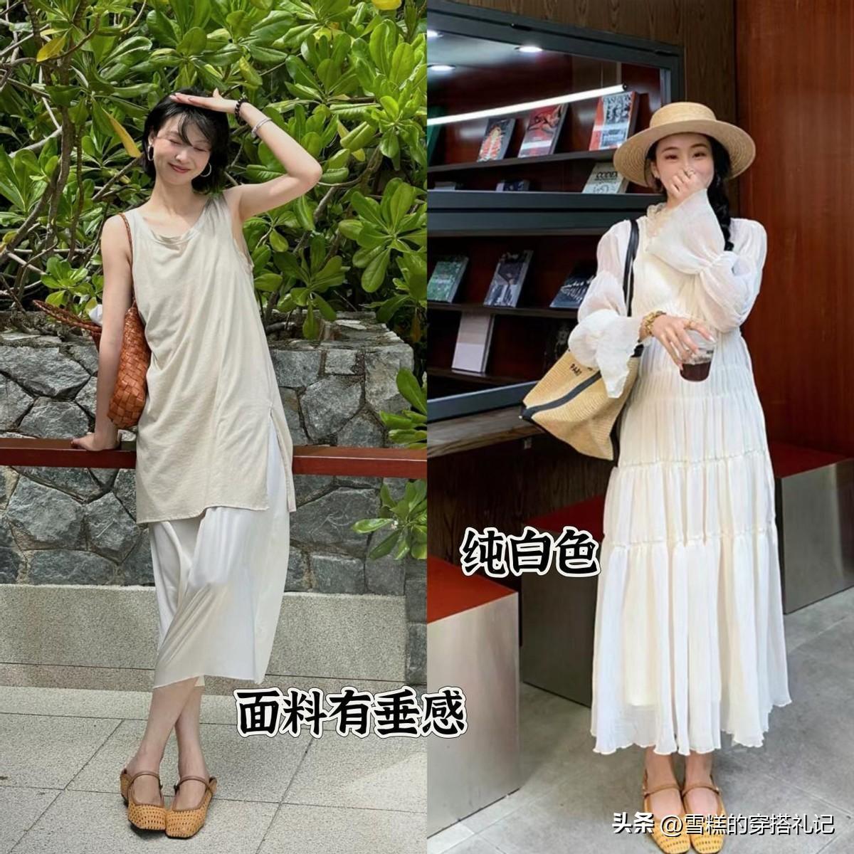 搭配草編鞋,千萬不要錯過小白裙,裙襬垂墜感十足的白色連衣裙,和原木色草編鞋進行組合,充滿着夏日氛圍感,看上去特別浪漫唯美。
