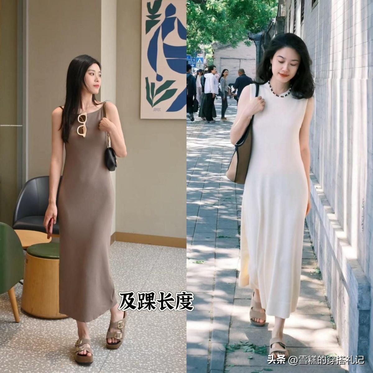 ✓草編鞋+經典色無袖裙,隨性慵懶