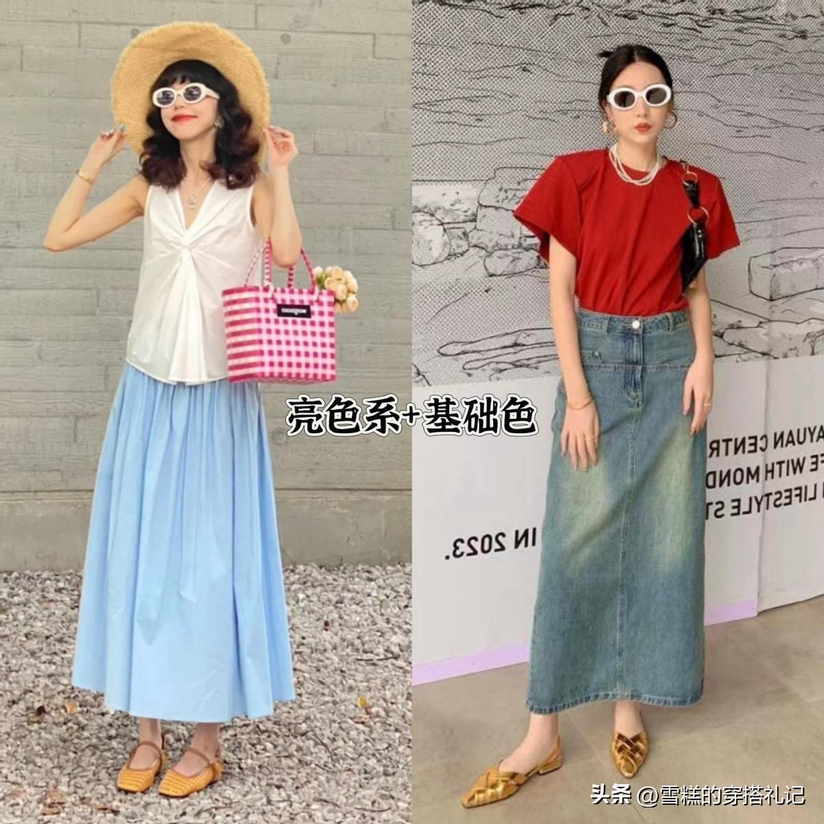 想要襯膚顯白,紅色T恤便可以滿足你的需求,基礎款式的純棉紅T恤,搭配復古感的牛仔直筒長裙,款式簡約不容易出錯,走在街上回頭率100%。