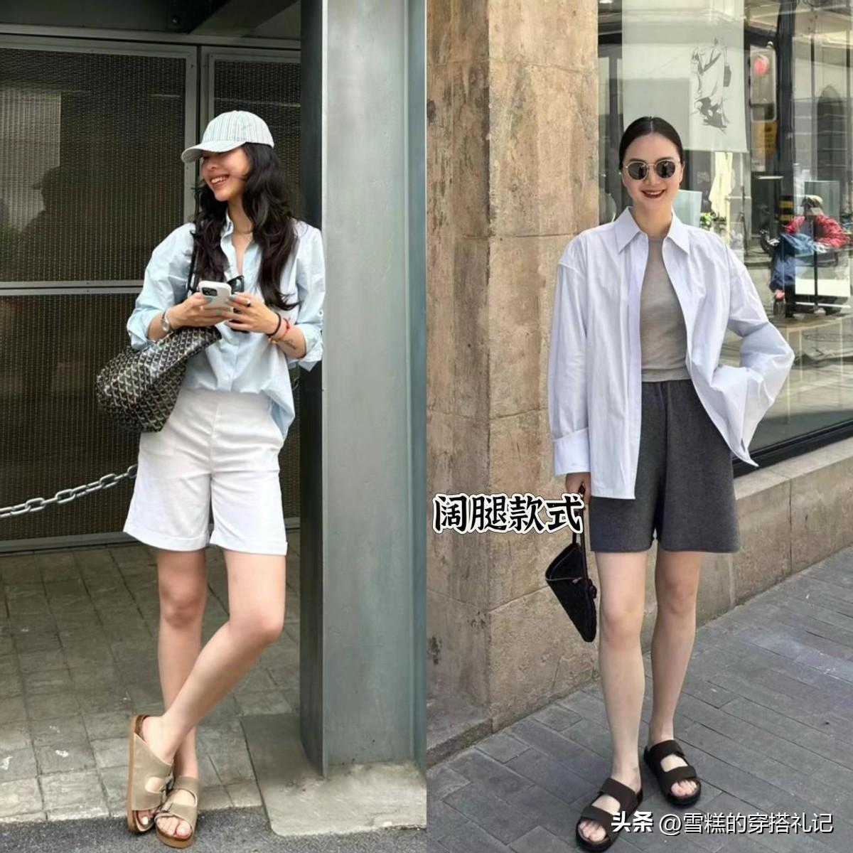 在搭配短褲和勃肯涼鞋時,建議大家可以選擇硬挺有型的襯衫進行組合,襯衫的顏色要清淡素雅,在裏面疊穿修身款式的打底,造型會顯得更豐富。