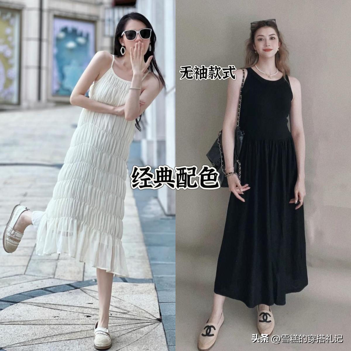 帶點裝飾性的草編鞋,就很適合搭配經典色的無袖裙了,款式之間的對比,能夠很好的平衡造型,避免過於繁瑣、花哨、複雜的現象,影響到最終的美感。