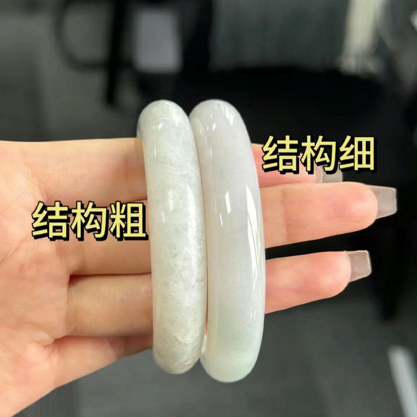 首先來講物理性質上的硬度,這裏翡翠手鐲比玉手鐲更勝一籌。一般翡翠的硬度是6.5-7之間,而玉質比較軟,硬度是在6-6.5之間。