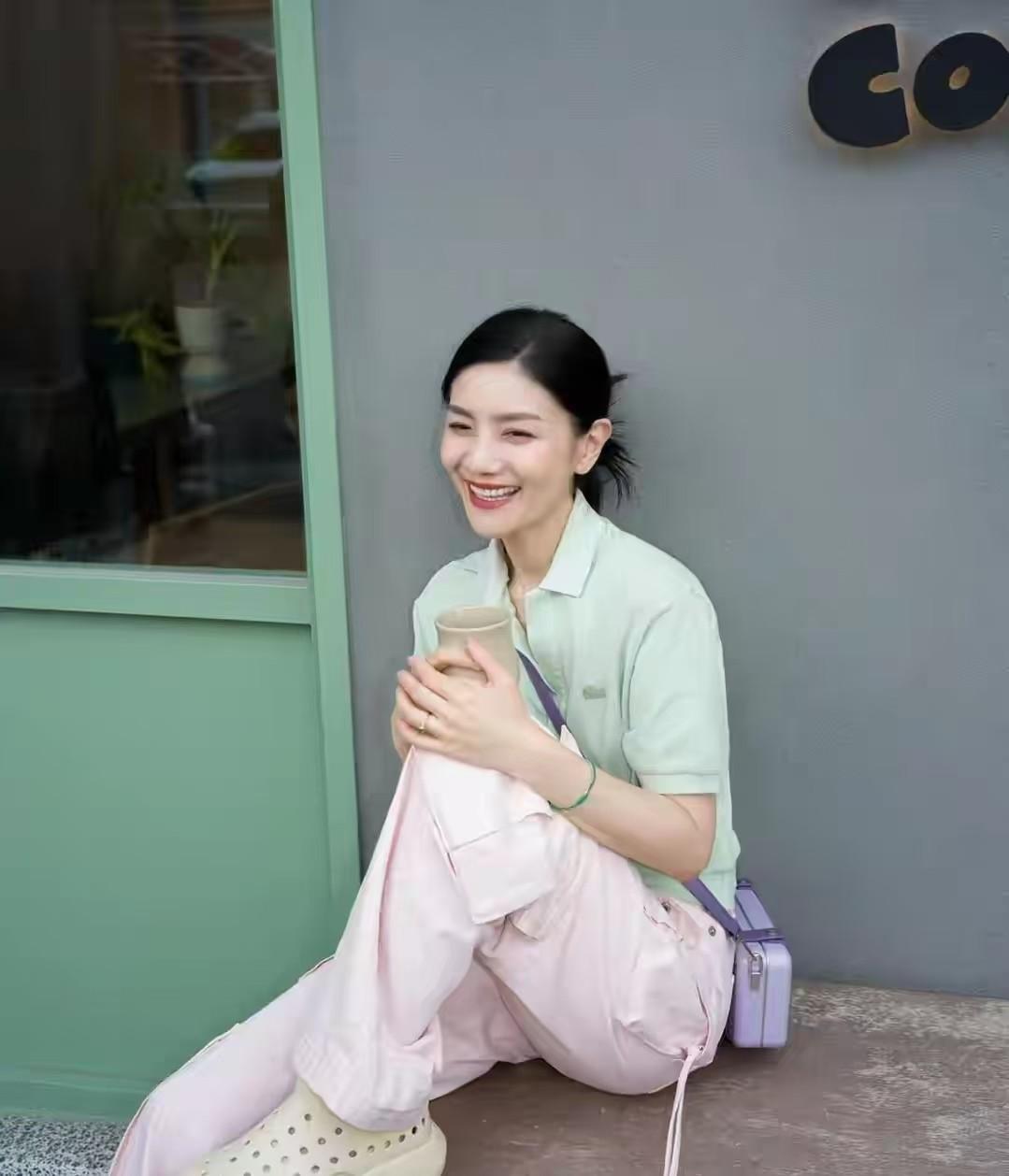 48歲胡可又帶火了一種新穿法:叫“花襯衫+短褲”,洋氣又顯年輕