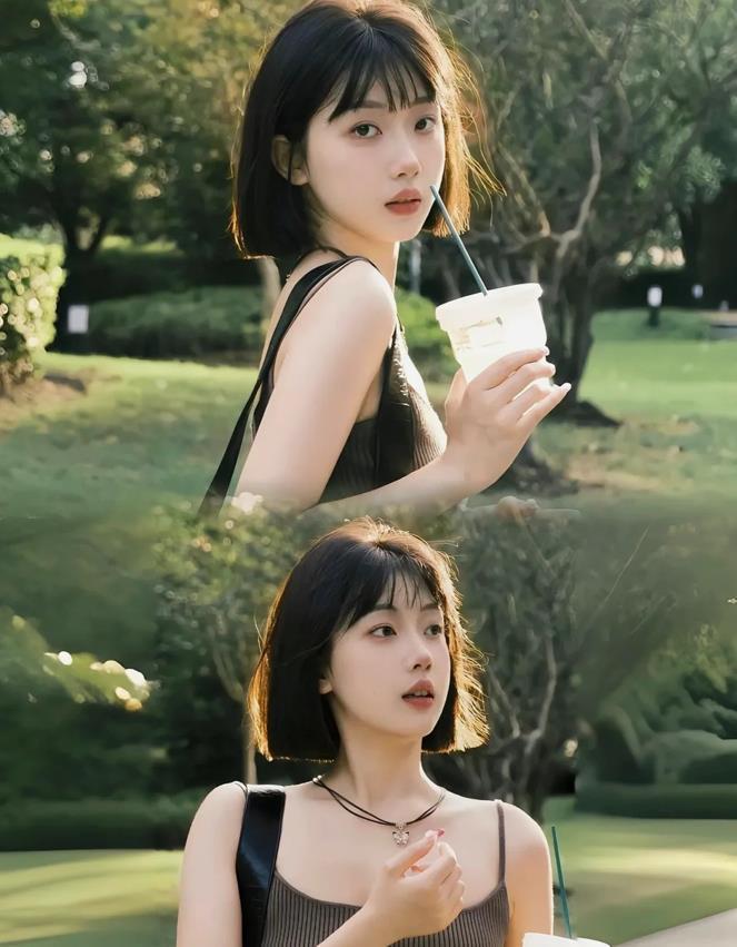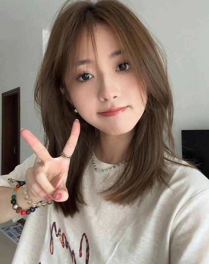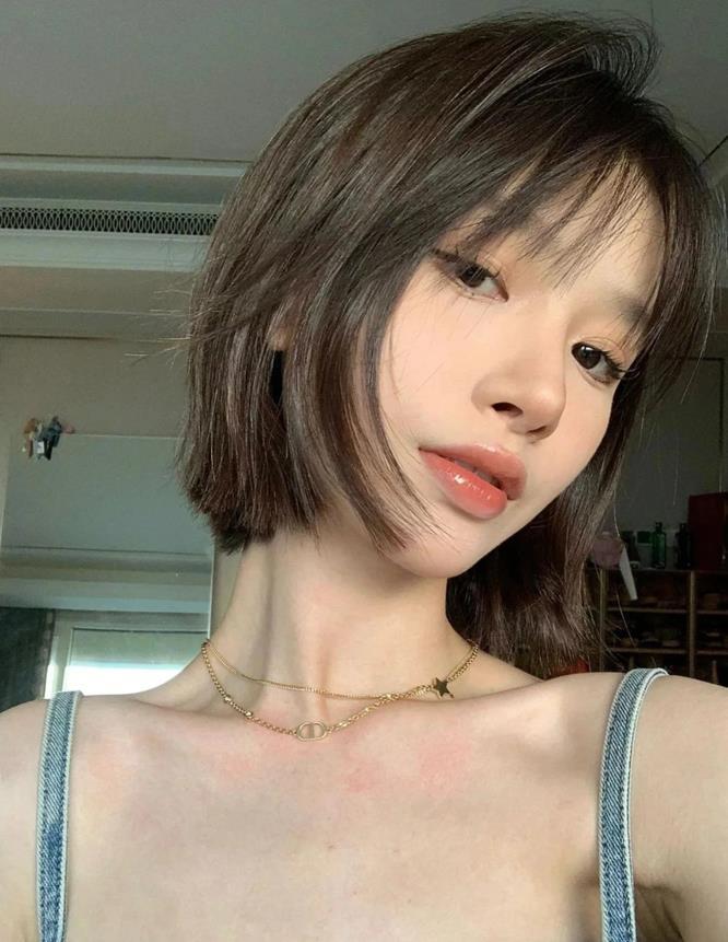 高層次的短髮,也是最適合髮量少女生的,記得頭髮的長度要修剪短點,一般齊脖、鎖骨或者是齊耳長度都行,選擇空氣劉海進行修飾,這也太修飾臉型了,也非常減齡,少女範十足。