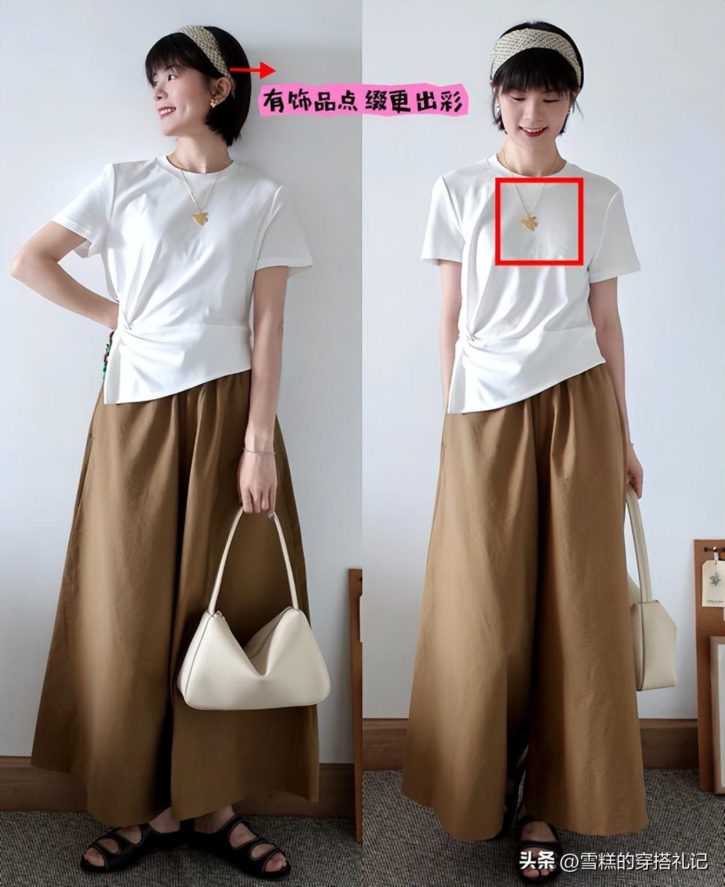 杭州阿姨的T恤穿搭本身也是值得我們學習的,大多數都是以簡約的質感爲主穿出時尚與氣質。穿搭小白想要學一套容易上手又不會出錯的穿搭方式,用白T恤配闊腿褲來穿,T恤營造視覺的乾淨與舒適,闊腿褲帶來瀟灑與自信。